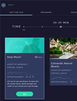 - des séances d'entraînement vidéo dirigées par un formateur, qui vous recommande un contenu spécifique en fonction de votre historique d'entraînement,