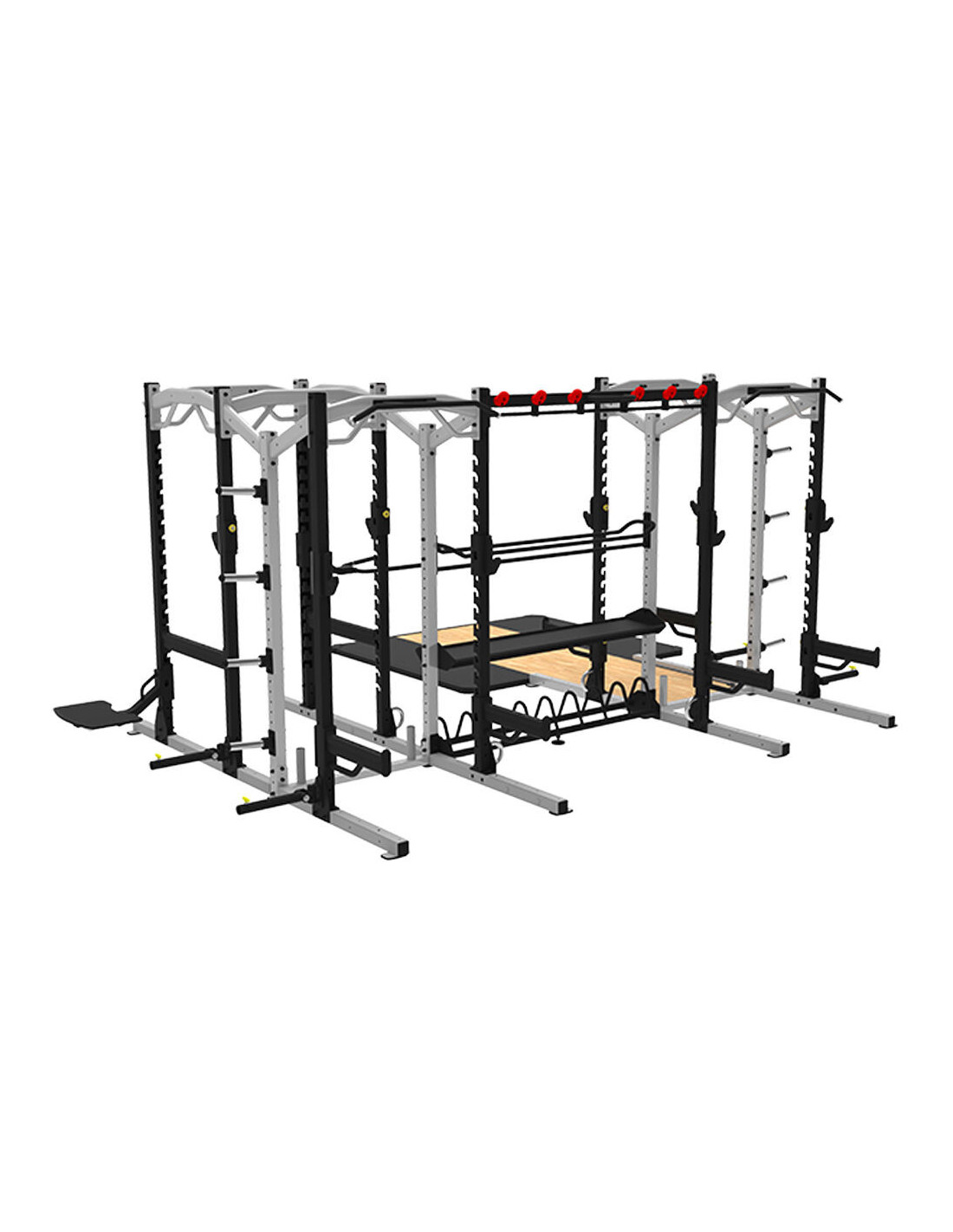 Cette riche variété de fonctionnalités et d'accessoires optionnels professionnels offrent de nombreuses possibilités d'entraînement pour un large éventail d'utilisateurs et les nombreuses combinaisons possibles satisferont les différents besoins des salles et centres sportifs, des centres de fitness, mais aussi des clubs orientés vers l'haltérophilie, l'entraînement fonctionnel, le crossfit, etc... Cet ensemble hautement fonctionnel ne manquera pas d'attirer l'attention dans votre club.