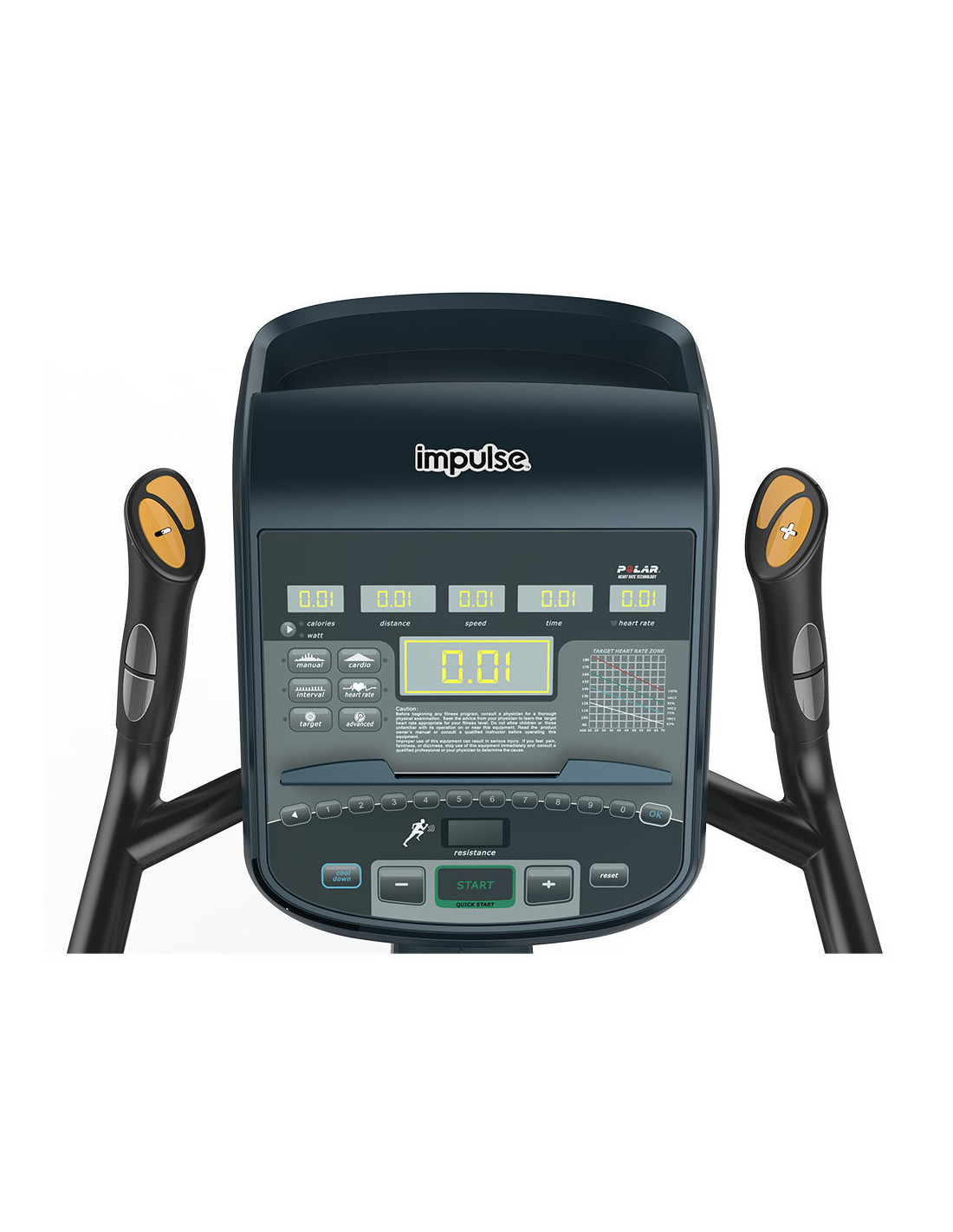La console propose 7 programmes d'entraînement différents et le vélo offre des changements de résistance incrémentiels entre les niveaux 1 et 25 pour une puissance de 450 Watts. Avec des capteurs de fréquence cardiaque par contact et une compatibilité avec les principales ceintures télémétriques du marché (ceinture non fournie) ainsi qu'un affichage complet des principales informations, les utilisateurs peuvent surveiller avec précision les performances et l'intensité de leur entraînement.