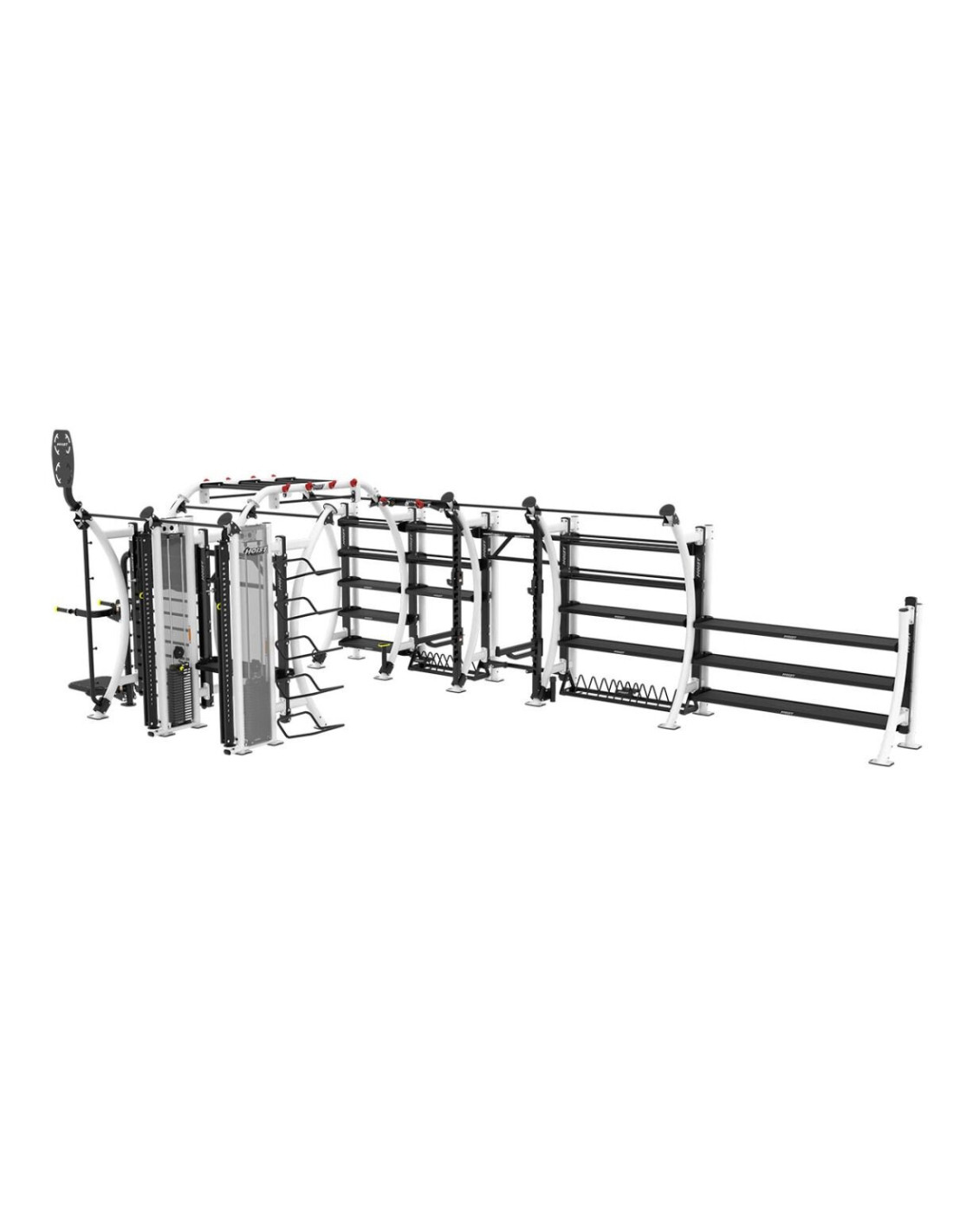 Le pont fonctionnel à sept éléments PS-7E-FB de HOIST Fitness est une configuration entièrement équipée conçue pour améliorer votre expérience en salle de sport. Il comprend une station rack à squat, une station à deux poulies universelles rotatives EZG , une station de dip, une station de pliométrie, des landmines, de nombreux rangements  et bien plus encore, offrant une large gamme d'options d'entraînement fonctionnel.