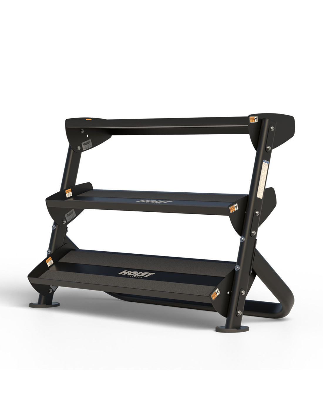 Le range haltères & kettlebells horizontal semi-professionnel Hoist Fitness HF-5461-48 - avec son option HF-5461-OPT-48 - dispose de trois niveaux pour stocker jusqu'à 13 paires de la plupart des haltères hexagonaux de 1 à 22 kg. Le revêtement antidérapant protège le châssis et les têtes des haltères, et assure la bonne stabilité des haltères rangés. Chaque niveau peut être installé en position inclinée pour vos haltères ou en positon horizontale pour vos kettlebells.