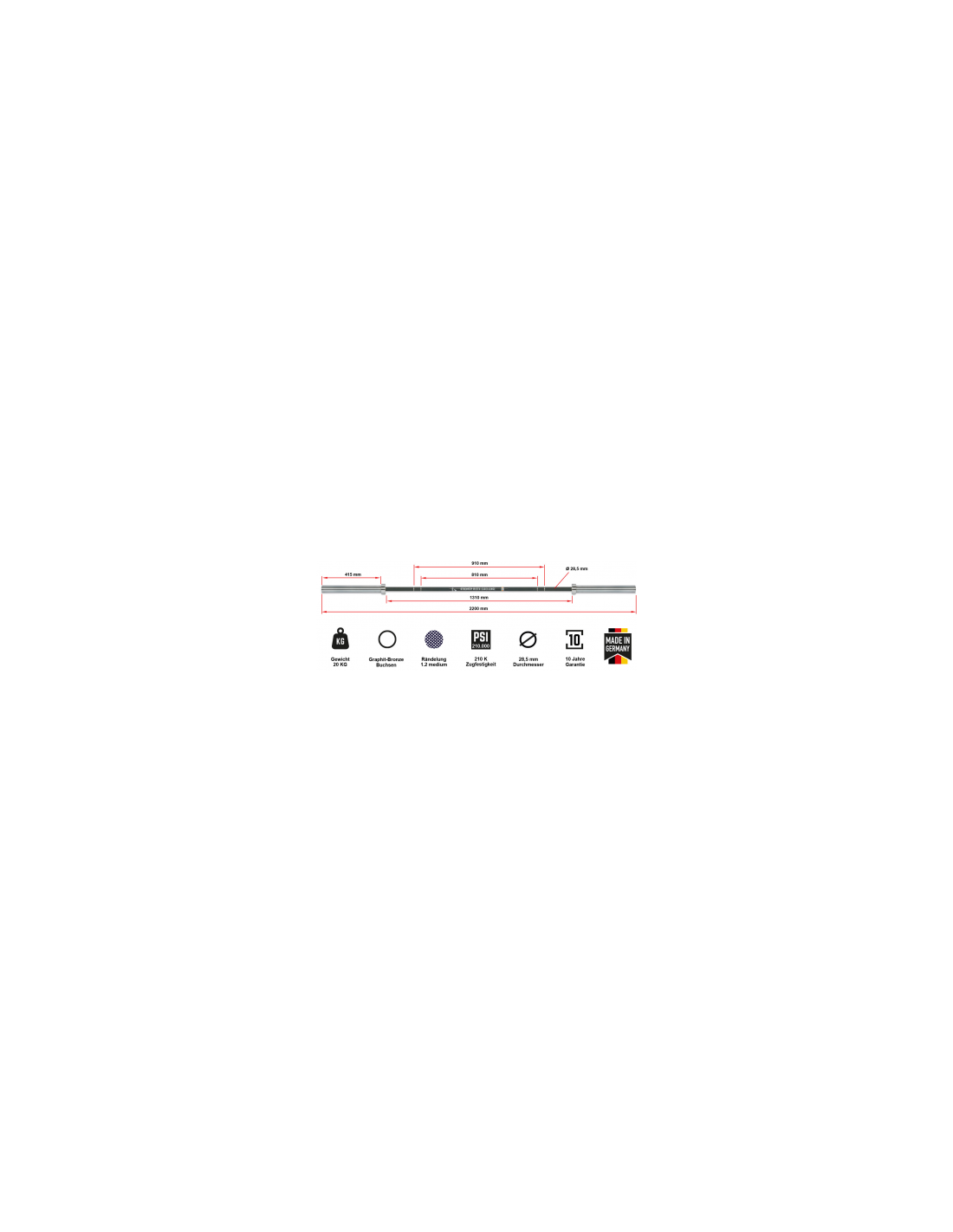 Caractéristiques techniques de la barre de musculation olympique - 900 kg max