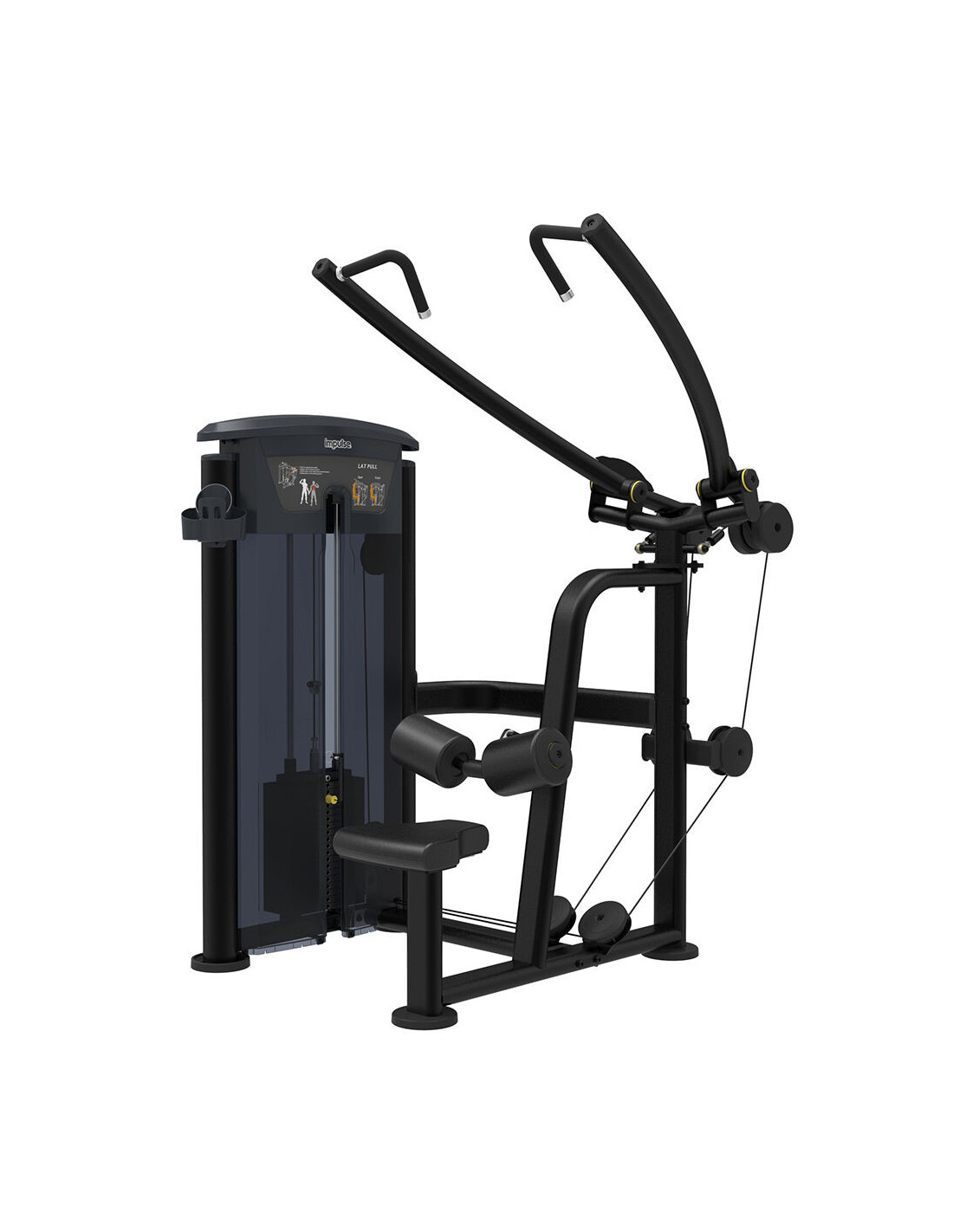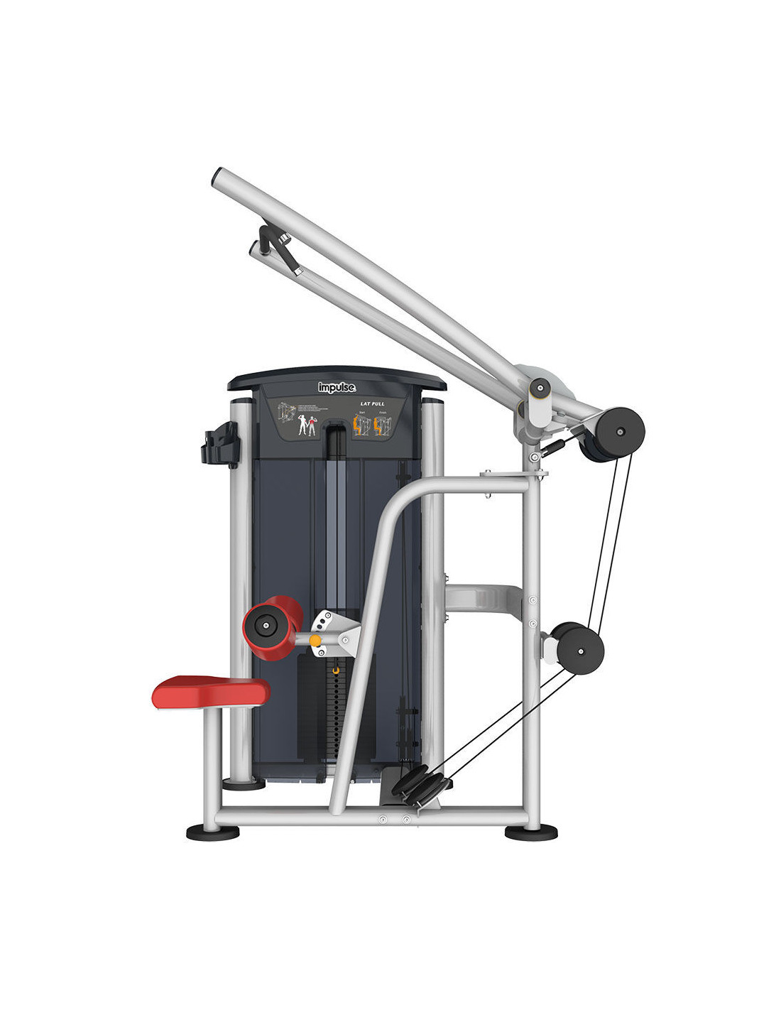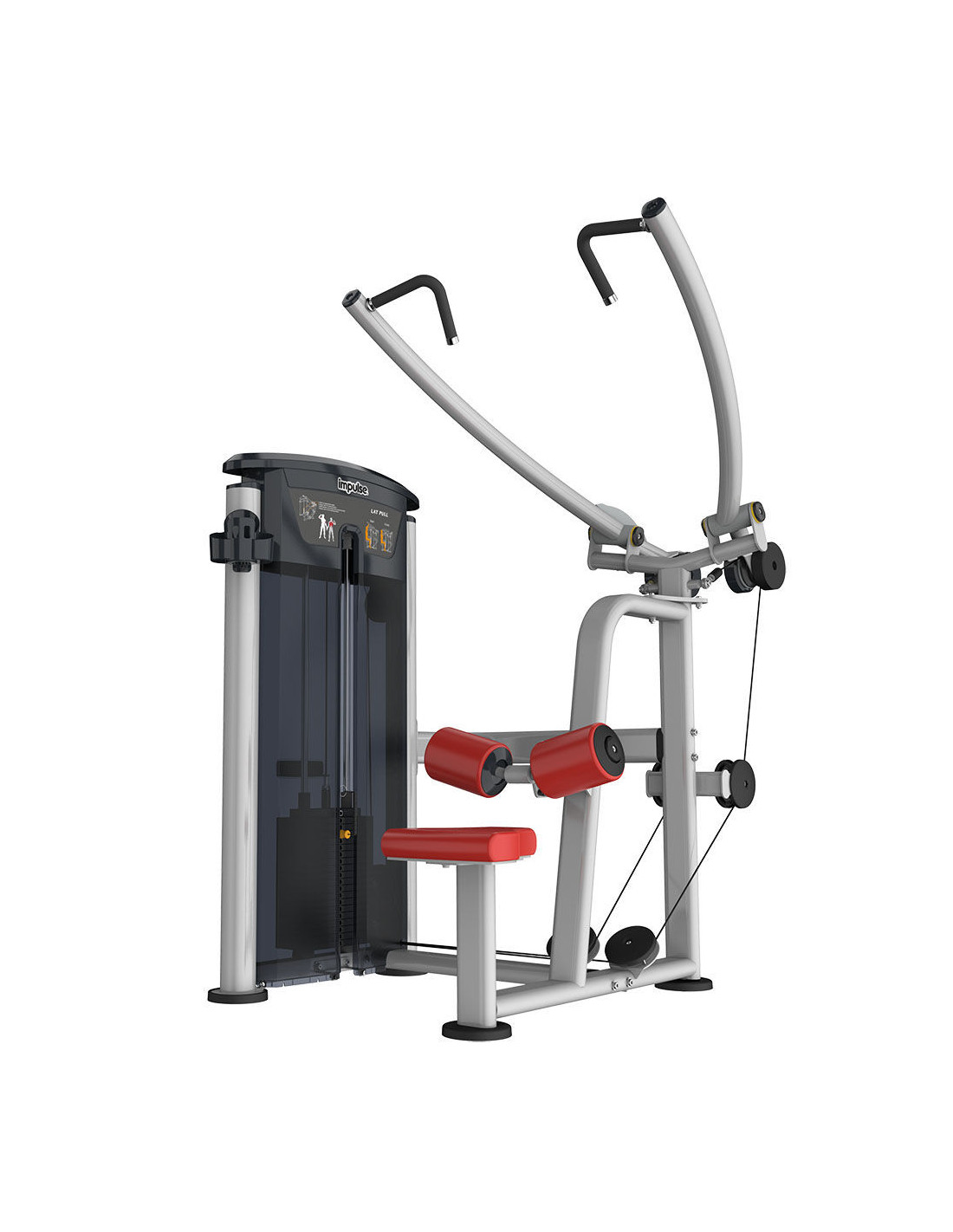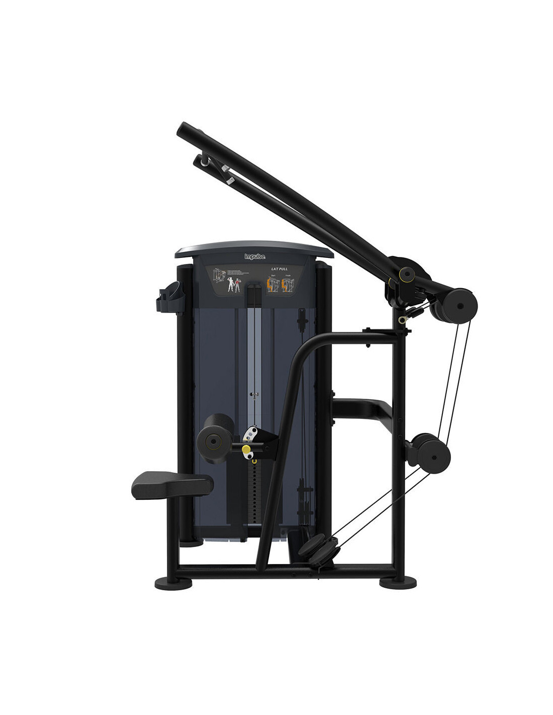 La poulie haute divergente (Lat Pulldown) Impulse Fitness IT9502 est un appareil de musculation professionnel conçu pour travailler principalement le latissimus dorsi et accessoirement le deltoïde et le biceps brachial en tirant sur les poignées divergentes et indépendantes après avoir choisi le poids approprié jusqu'à 134 kg.