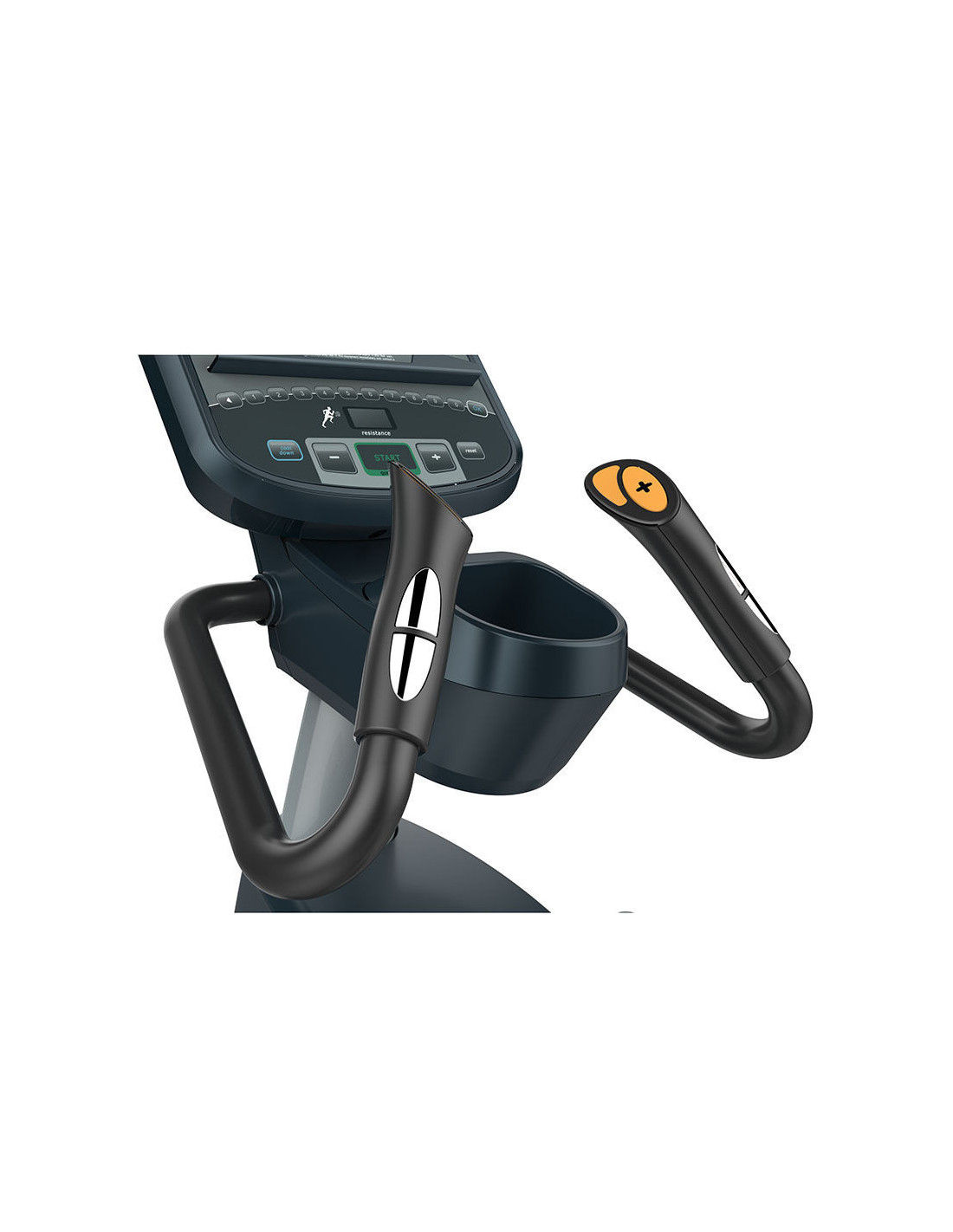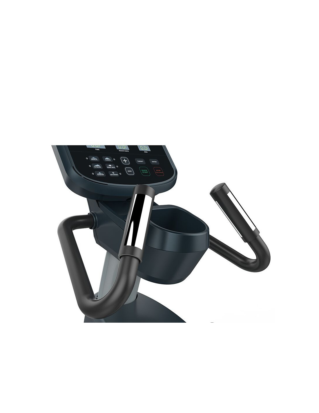Le stockage des accessoires est situé directement à partir de l'utilisateur sous la console, et la console elle-même est dotée d'un écran LED. Il existe également des commandes de résistance intégrées dans les poignées fixes de la machine afin que l'utilisateur n'ait jamais besoin de retirer ses mains. Ces poignées ont également des capteurs de fréquence cardiaque.