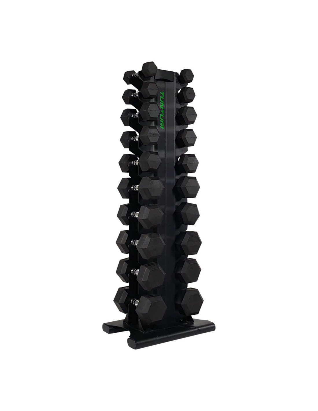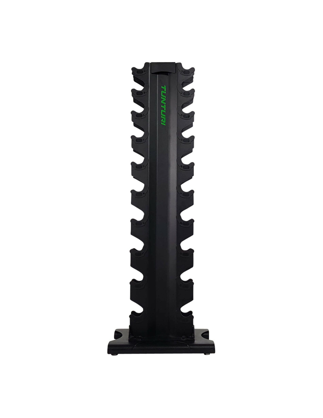 Des haltères, des haltères et encore plus d'haltères. Vous aimez vous entraîner avec des haltères et changer régulièrement de poids ? Mais vous aimez aussi que votre zone d'entraînement soit bien rangée une fois vos séances terminées. Si tel est le cas, il est judicieux d'utiliser ce rack de stockage vertical pour haltères hexagonaux Tunturi.