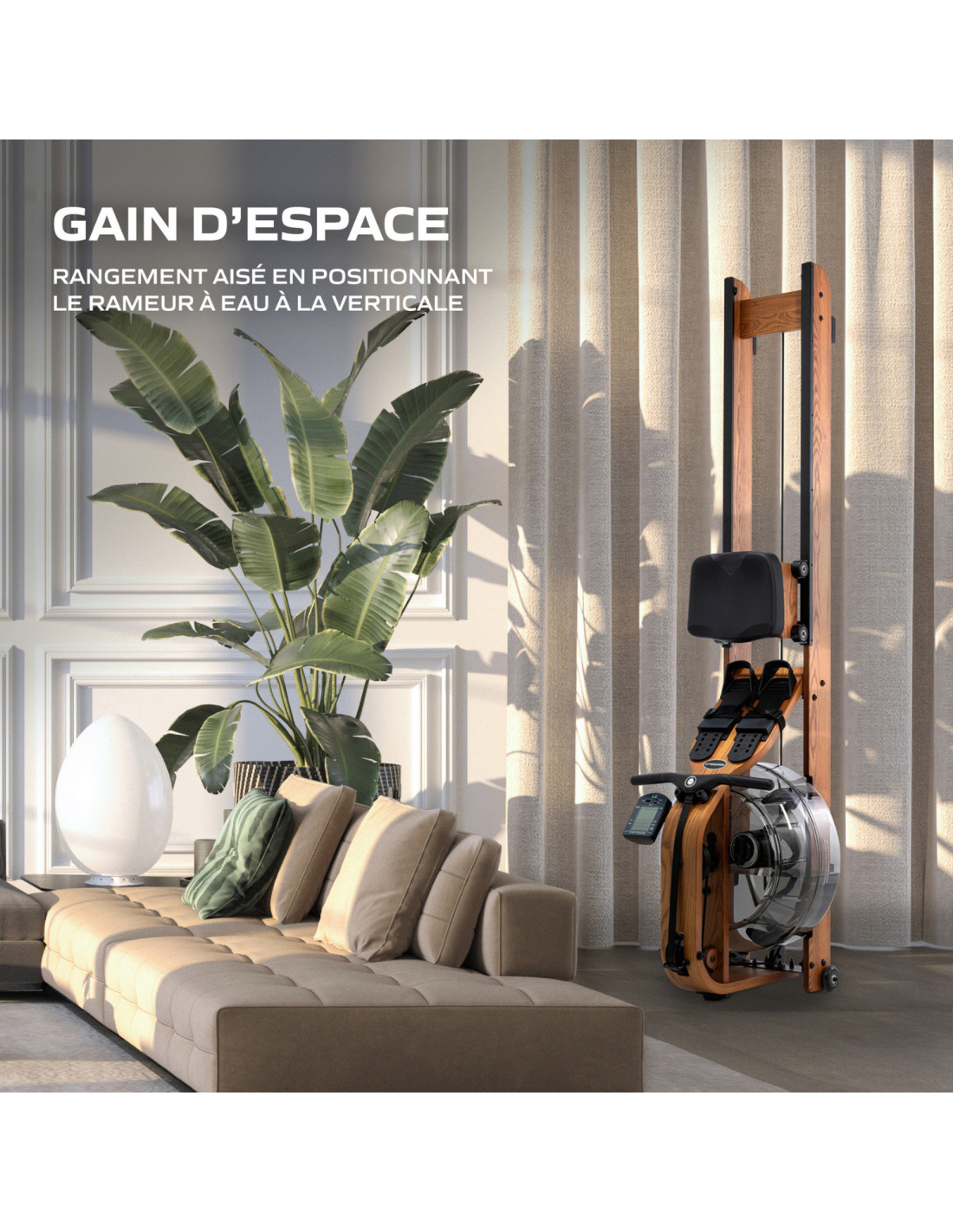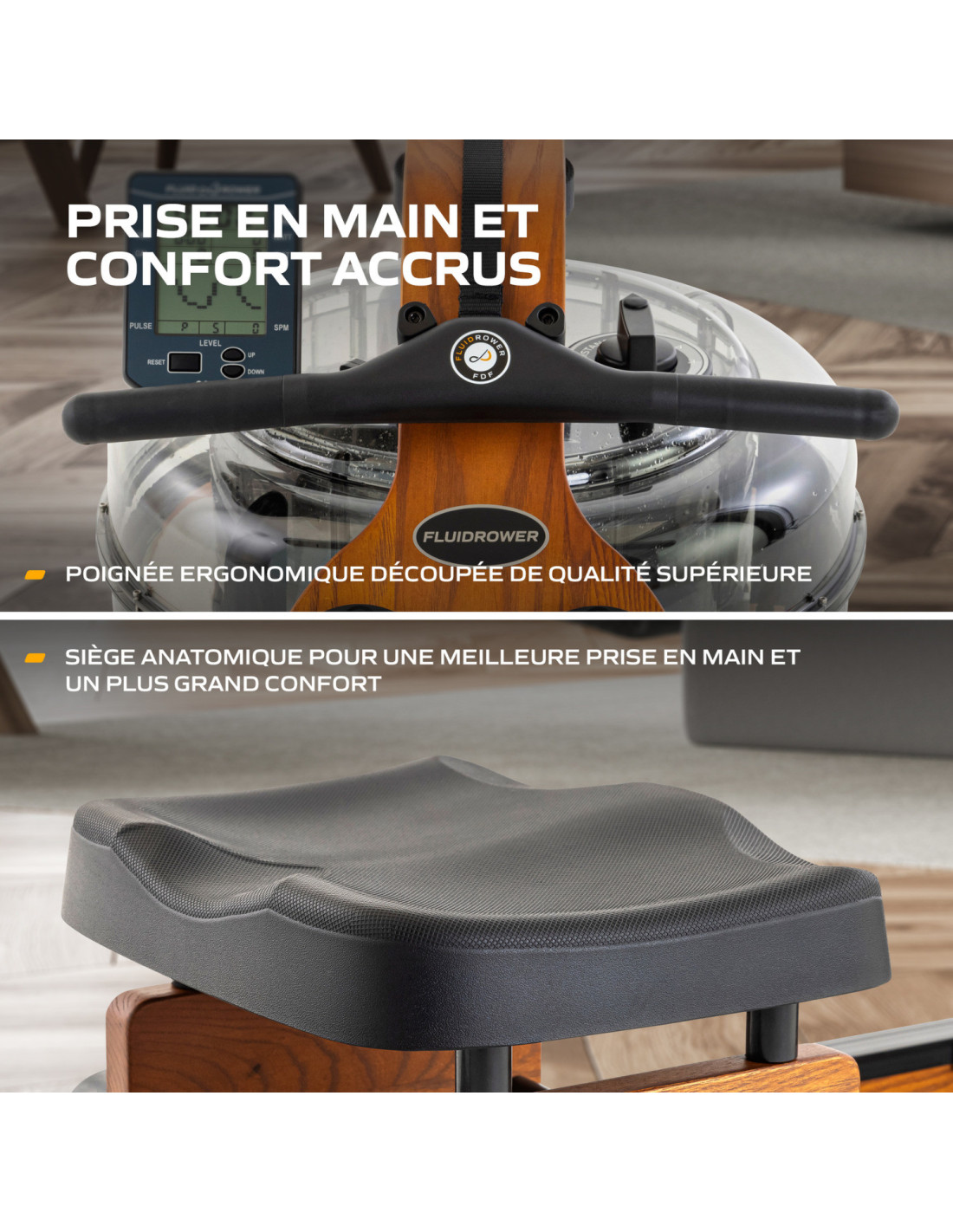 Découvrez la qualité d’un rameur Fluid Rower à résistance réglable et ramez comme si vous étiez sur l’eau. Le modèle professionnel Viking Pro XL est doté d’un réservoir d’eau extra-large offrant 65 % de résistance en plus. Il est fabriqué en bois de frêne américain et sa finition est en chêne foncé.