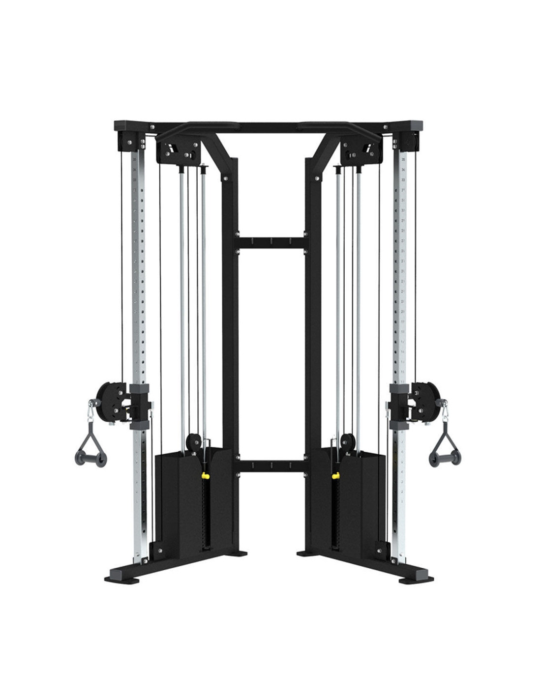 La double poulie professionnelle Impulse IF9330 permet un entraînement complet de tous les groupes musculaires grâce à ses deux points de tirage indépendants réglables en hauteur.
