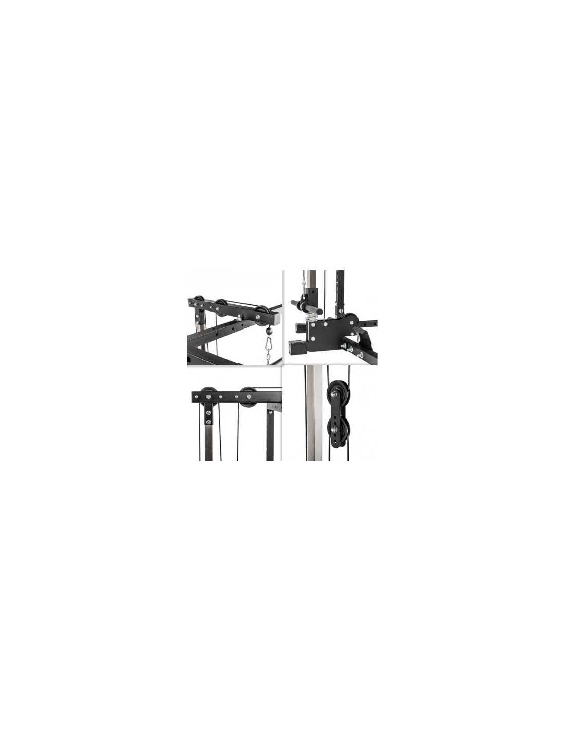 Votre cage à squat dispose d'une barre de traction multi-grip, vous offrant une multitude de prises afin de développer votre dos et vos biceps. Une station à poulie haute et basse vous permet de travailler plusieurs muscles grâce aux exercices de tirage. La capacité de charge du poste à poulie est de 140 kg. Les poulies sont fabriquées à partir de roulement à billes et les câbles sont en acier; un fonctionnement fluide et en douceur est donc assuré.