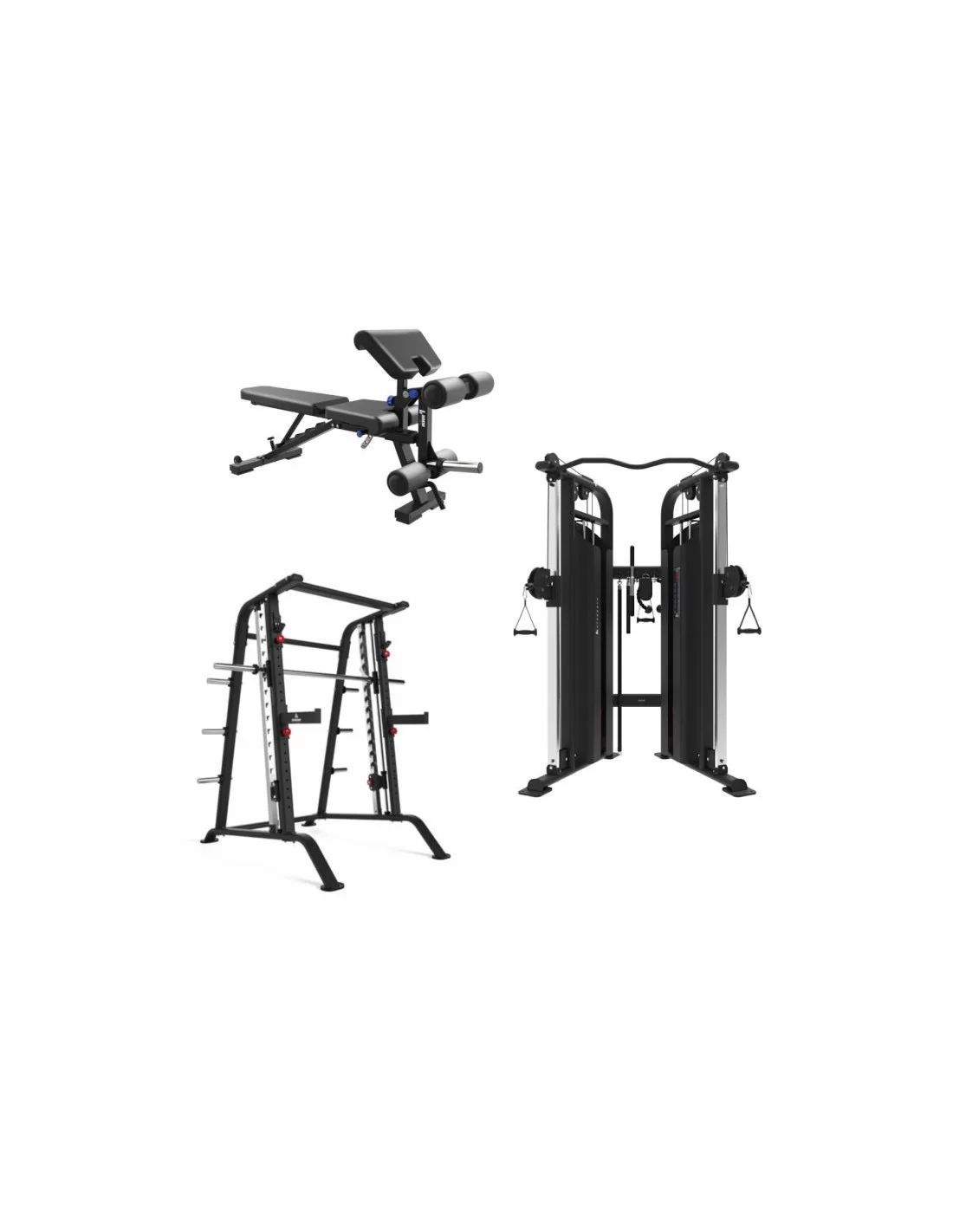 Avec ce pack promotionnel de musculation, vous pouvez profiter du nouveau banc réglable Binom avec accessoires, du Smith Multipower BS04 pour un entraînement à haute intensité et des accessoires Dual Adjustable Pulley + avec lesquels vous pouvez limiter votre force. Un équipement parfait pour l'entraînement de force professionnel.
