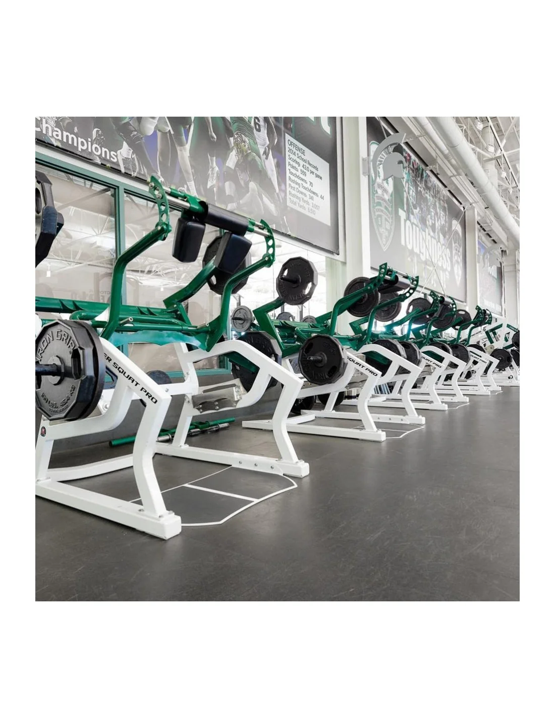 Le Rogers Pendulum Power Squat Pro a été conçu pour offrir la stimulation musculaire complète d'un squat avec poids libres tout en minimisant les dangers et les risques associés à ce mouvement. Il répond aux défis courants auxquels sont confrontés les athlètes, tels que les faiblesses biomécaniques, les blessures, les longueurs de membres irrégulières et les problèmes qui empêchent une bonne prise de la barre. Le joug flottant breveté permet aux haltérophiles de toutes tailles et de toutes longueurs de membres de se positionner correctement sur le plan biomécanique, ce qui leur permet de placer leurs pieds correctement sans risque de tomber en avant. Cette conception maintient les genoux dans une position saine et minimise la tension sur le bas du dos. Il convient d'être extrêmement prudent lors des squats avec des charges lourdes, car l'haltérophile assume tous les risques.