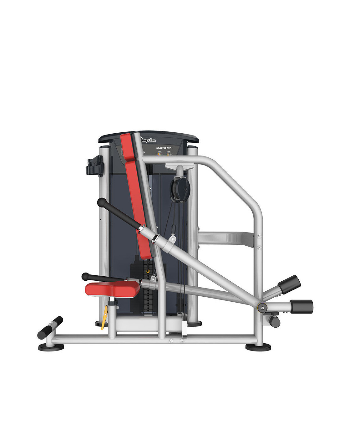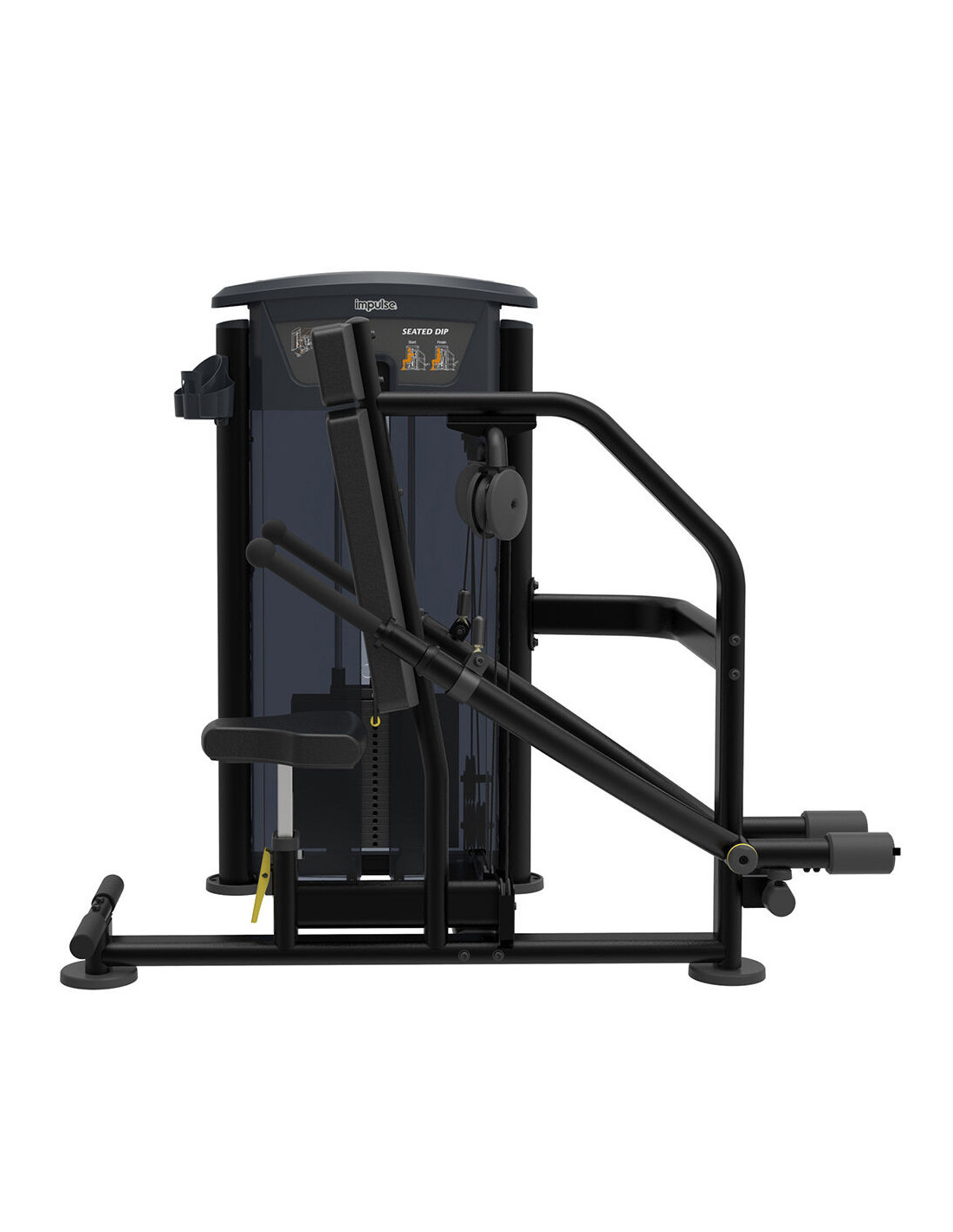 Le Seated Dip Impulse IT9517 est un appareil de musculation professionnel à charge guidée conçu pour travailler principalement le muscle triceps brachial et le muscle serratus antérieur auxiliaire. L'utilistauer peut travailler efficacement le muscle du bras et du tronc en poussant les poignées des deux côtés en même temps après avoir choisi le poids approprié jusqu'à 107 kg.