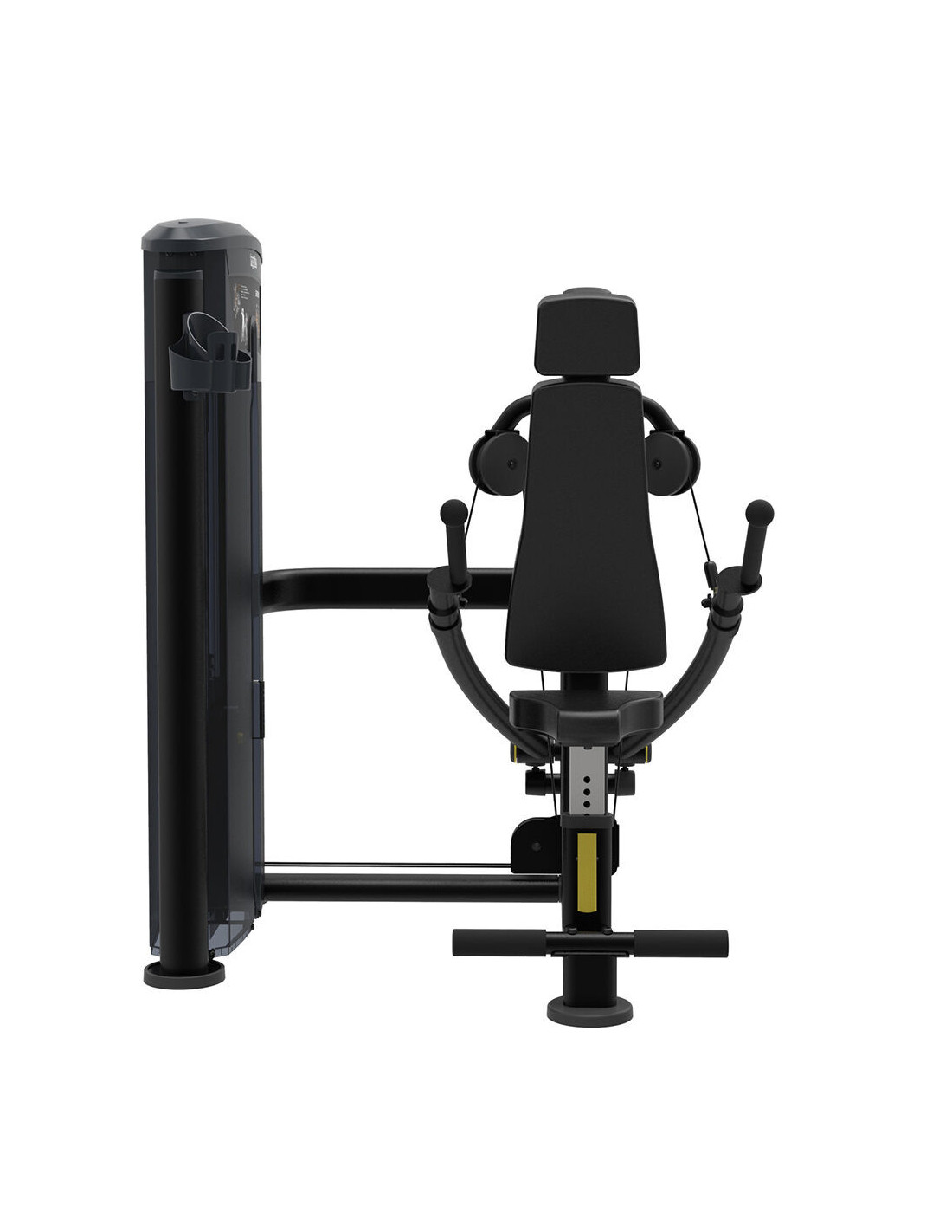 Les poignées rotatives permettent d'ajuster rapidement l'écartement pour s'adapter aux différents gabarits d'utilisateurs. Le dossier incliné améliore la stabilisation procure un angle d'exercice idéal. Le repose-pieds ronds permet de trouver instantanément la bonne position et le bon angle de cheville quelle que soit votre taille. Les bras de poussée indépendants offrent un entraînement naturel et ergonomique, permettant aussi un rééquilibrage des muscles.