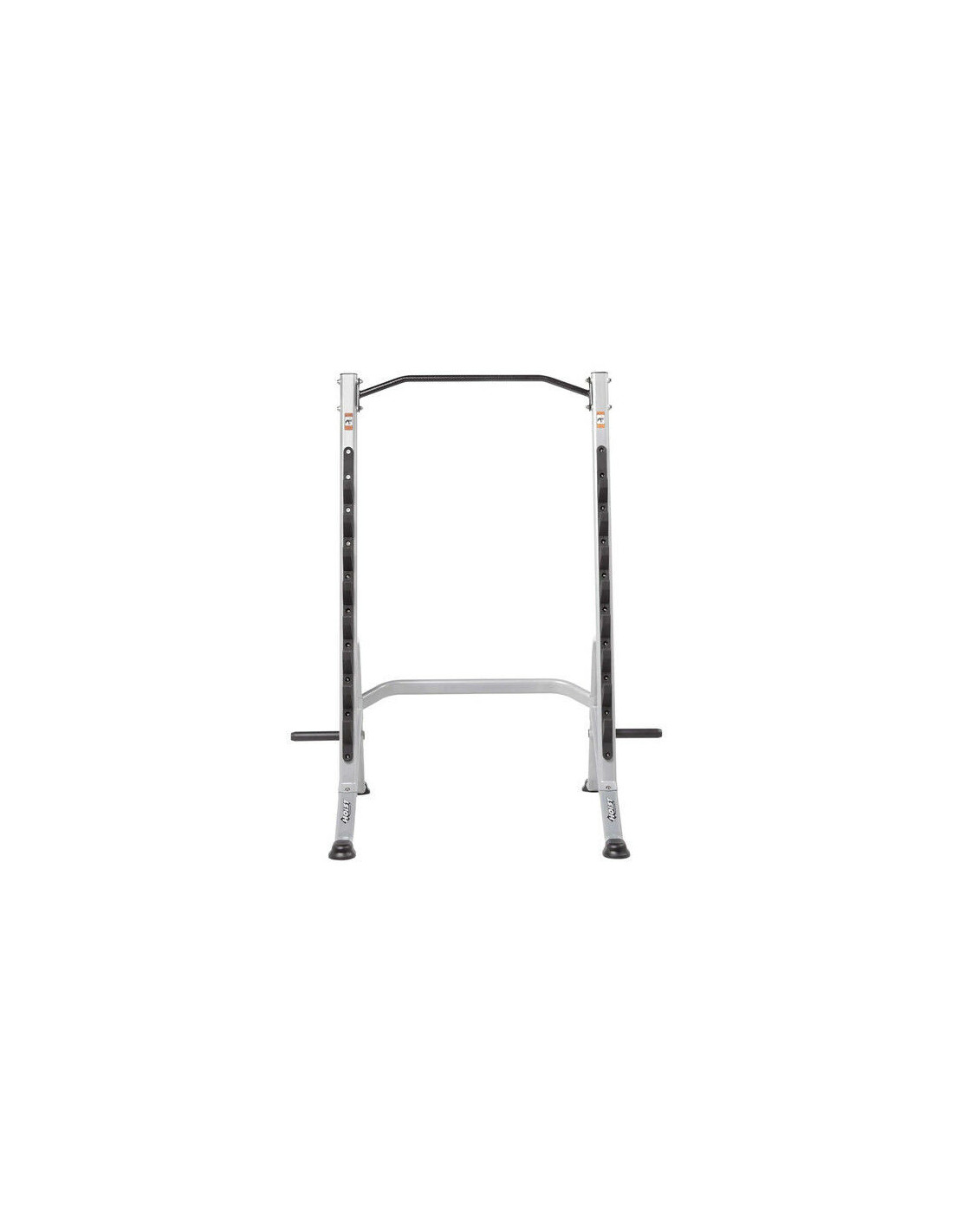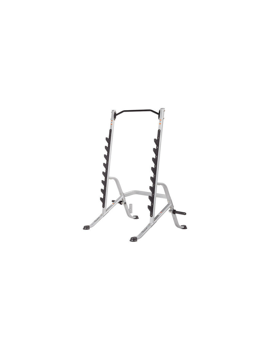 Le rack à squat Semi-Professionnel Hoist Fitness HF-5970 permet d'effectuer des sessions de squats ou de développé (en le complétant par exemple avec un banc réglable Hoist HF-5165). Le solide châssis métallique supporte une charge maximale de 272 kg pour les utilisateurs particuliers ou semi-pro les plus exigeants. Avec un poids de 56 kg, une large embase et ses patins caoutchouc, il sera très stable pour vos séances de tractions. Les crochets repose-barres sont recouverts de polyuréthane pour protéger votre barre olympique et le châssis.