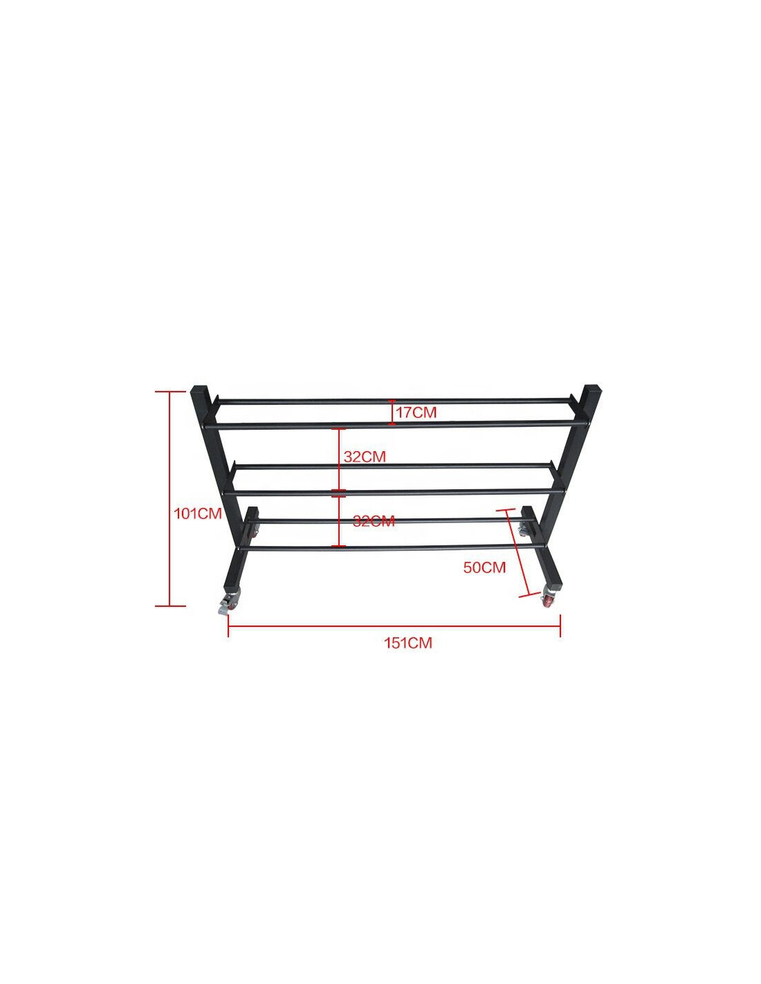 Ce rack 3 niveaux permet de stocker vos medicine balls et vos walls balls. Votre espace cross-training est ainsi bien rangé en permanence et les déplacements sur le plateau se font en toute sécurité. Il se déplace facilement grâce aux roulettes verrouillables.