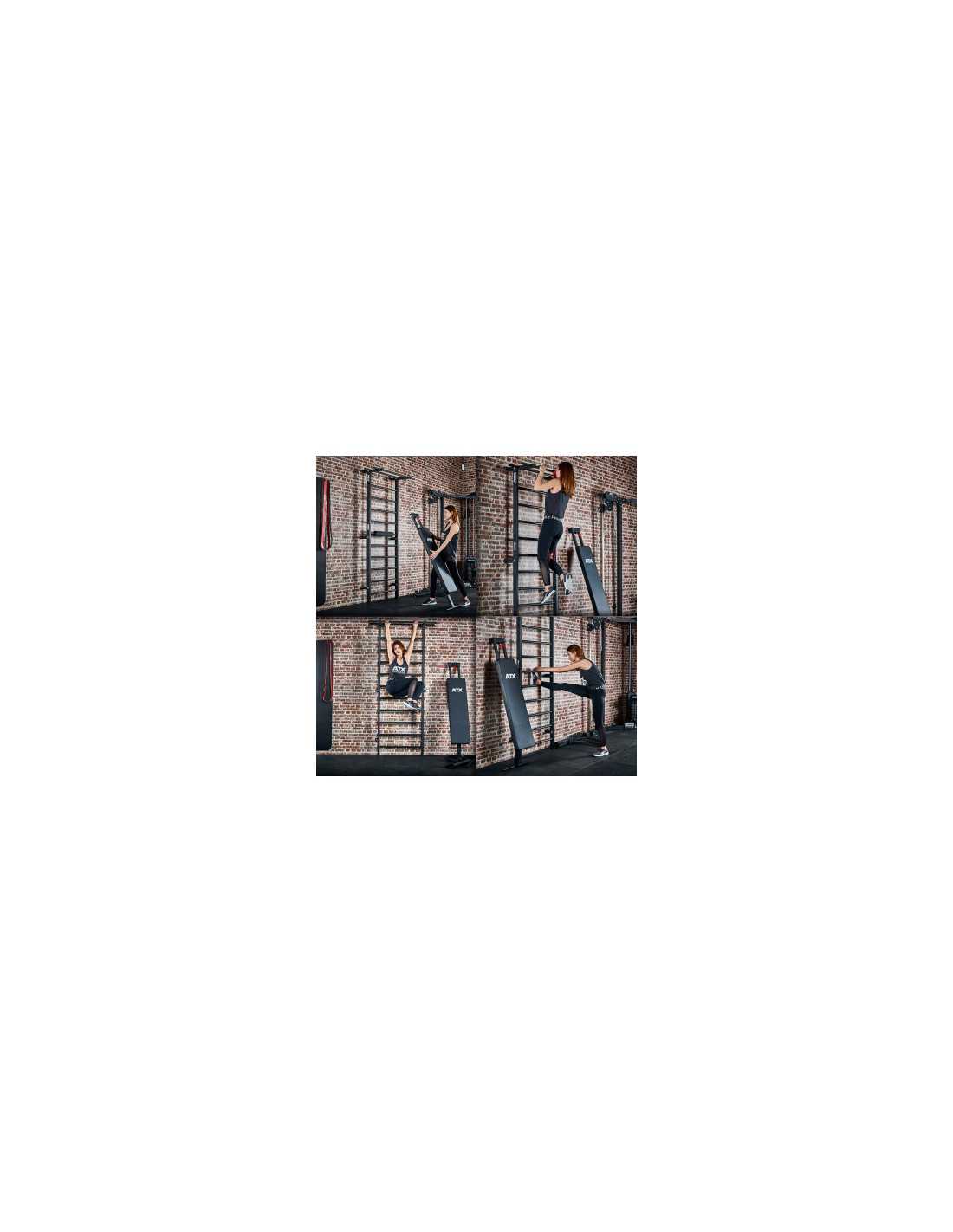 Cette échelle de musculation est une station de musculation multifonctions compacte conçu pour les homegym. Il s'agit d'une station de musculation constituée d'une barre de traction, d'une échelle, d'un rouleau de blocage pour abdos et d'un banc horizontal. Le tout est à fixer directement au mur ou sur un rig ATX. Les poignées, le dos et les accoudoirs sont recouverts de mousse souple avec un cuir synthétique de haute qualité. Le cadre en acier de haute qualité assure stabilité et sécurité pendant l'entraînement.