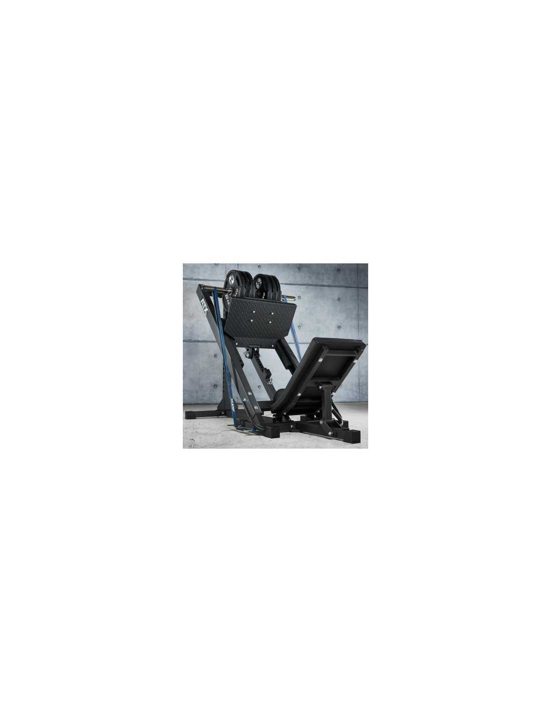 La presse à cuisses ATX est une presse à cuisse de musculation classique à inclinaison 45 degrés. Cette presse à cuisses inclinées permet de cibler les muscles des cuisses mais également ceux des mollets. La capacité de charge de l'appareil de musculation ATX est de 500 kg, qu'il faut charger avec des poids olympiques, ayant un diamètre de 50 mm. Il est également possible d'accroitre la résistance sur la presse à cuisses ATX classique en y ajoutant des bandes de résistances.
