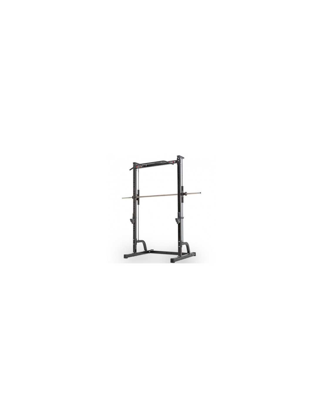 La Multipresse smith machine de musculation est un appareil fonctionnel et polyvalent qui vous permettra d'effectuer une multitude d'exercices en un seul appareil. Cet appareil multi-fonction rassemble à elle seule une barre guidée, un poste à tractions et une cage à squat. Vous pourrez ainsi pratiquer vos exercices de développés, squat et tractions en toute simplicité depuis votre home-gym à domicile.  Votre smith machine polyvalente dispose d'une multitude de réglages différents, de crans de sécurité, et vous offrira la possibilité de travailler à la barre libre standard ou olympique.