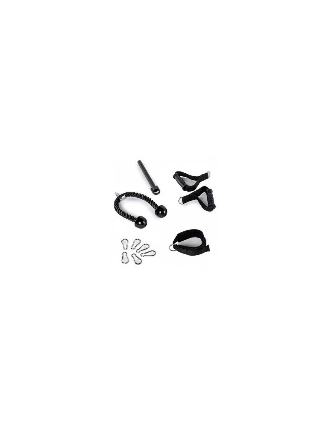Pour un entraînement complet, la station à poulie est fournie avec un kit d'accessoires comprenant :  corde à triceps, sangle de pied, barre transversale courte, 2 poignées à une main et des mousquetons. De plus, vous pourrez vous entraîner selon votre niveau grâce à la colonne de poids de 60 kg de la poulie polyvalente ATX. Les 60 kg de poids de la colonne sont répartis de la manière suivante : 24 x 2,5 kg. Pour solliciter le maximum de muscles de votre corps, la machine de tirage est réglable sur 26 positions différentes en hauteur.