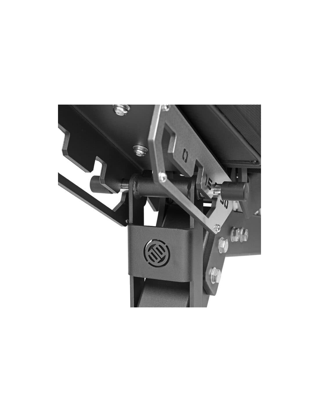 Il telaio principale è realizzato con tubi quadrati standard da 75×75×3 mm. È caratterizzato da un design verticale (con imbottitura inferiore per garantire stabilità e proteggere il pavimento). Il sedile e lo schienale utilizzano un rivestimento in pelle antiscivolo standard che ricopre un'imbottitura in schiuma di poliuretano, che è molto più resistente della tradizionale schiuma compressa. Sia la parte anteriore che quella posteriore utilizzano un design di regolazione antiscivolo a denti, combinato con un efficiente meccanismo di bloccaggio a bullone.