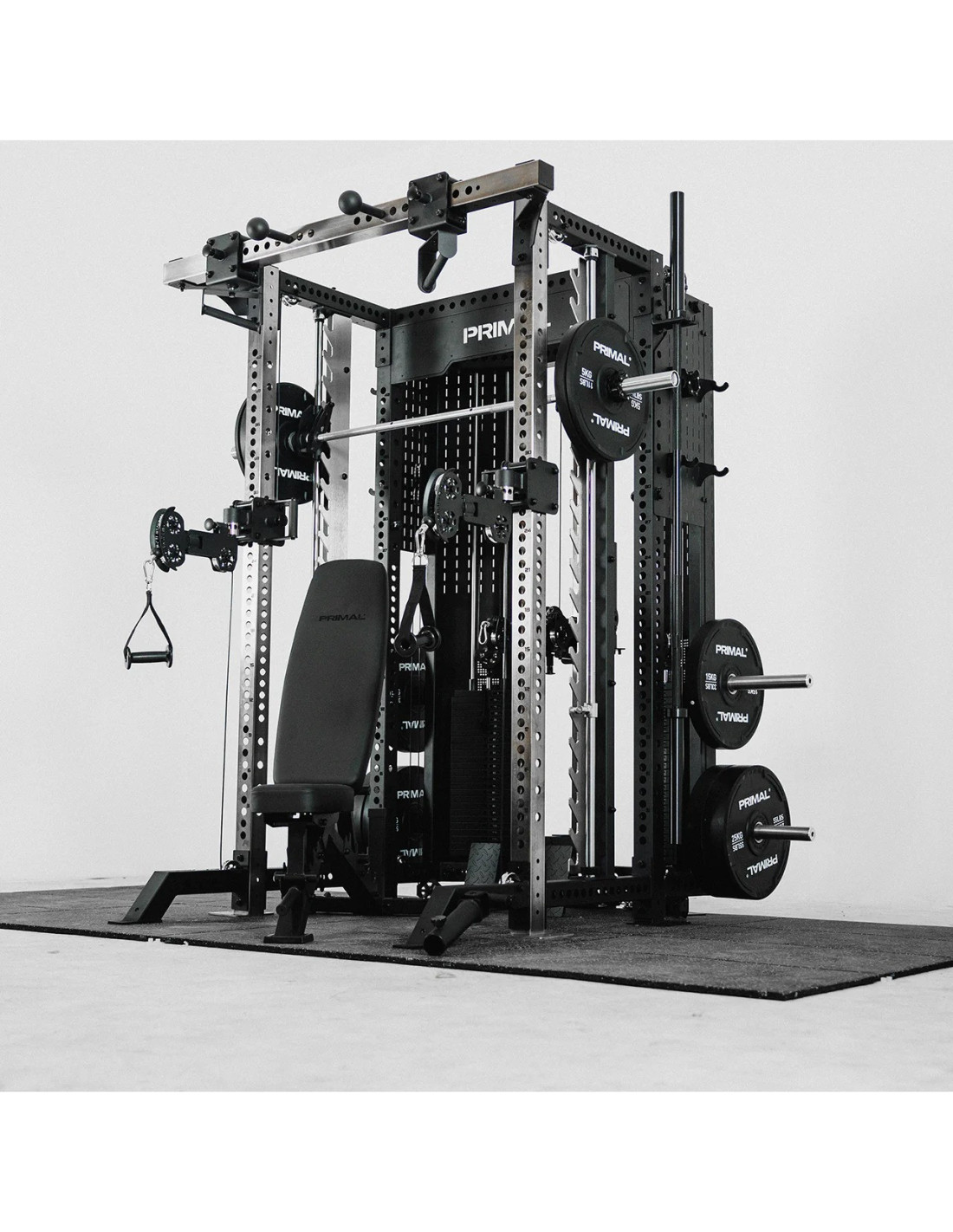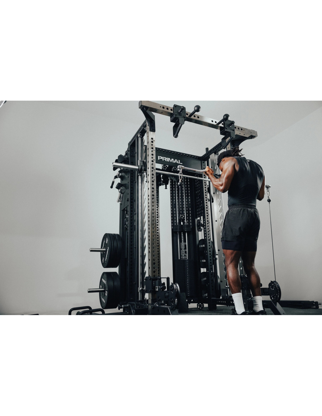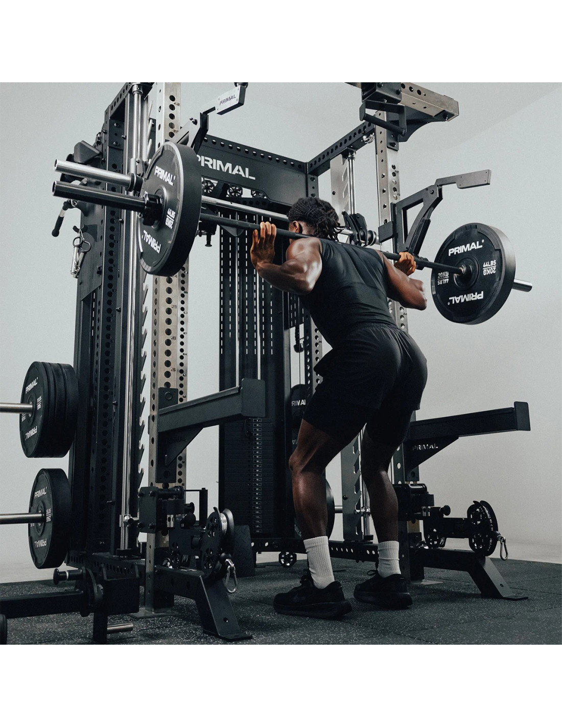 Le Système Multi Rack MRX9.0 de la série Primal Personal est conçu pour regrouper certaines des machines les plus prisées d'une salle de sport commerciale, tout en occupant beaucoup moins d'espace que plusieurs équipements distincts. Les machines principales incluses dans le Système Multi Rack MRX9.0 de la série Primal Personal sont : Demi-Cage, Entraîneur Fonctionnel, Machine Smith, Tirage Vertical/Rowing Bas et Presse à Jambes Verticale (lorsque la plaque de presse à jambes supplémentaire est achetée).