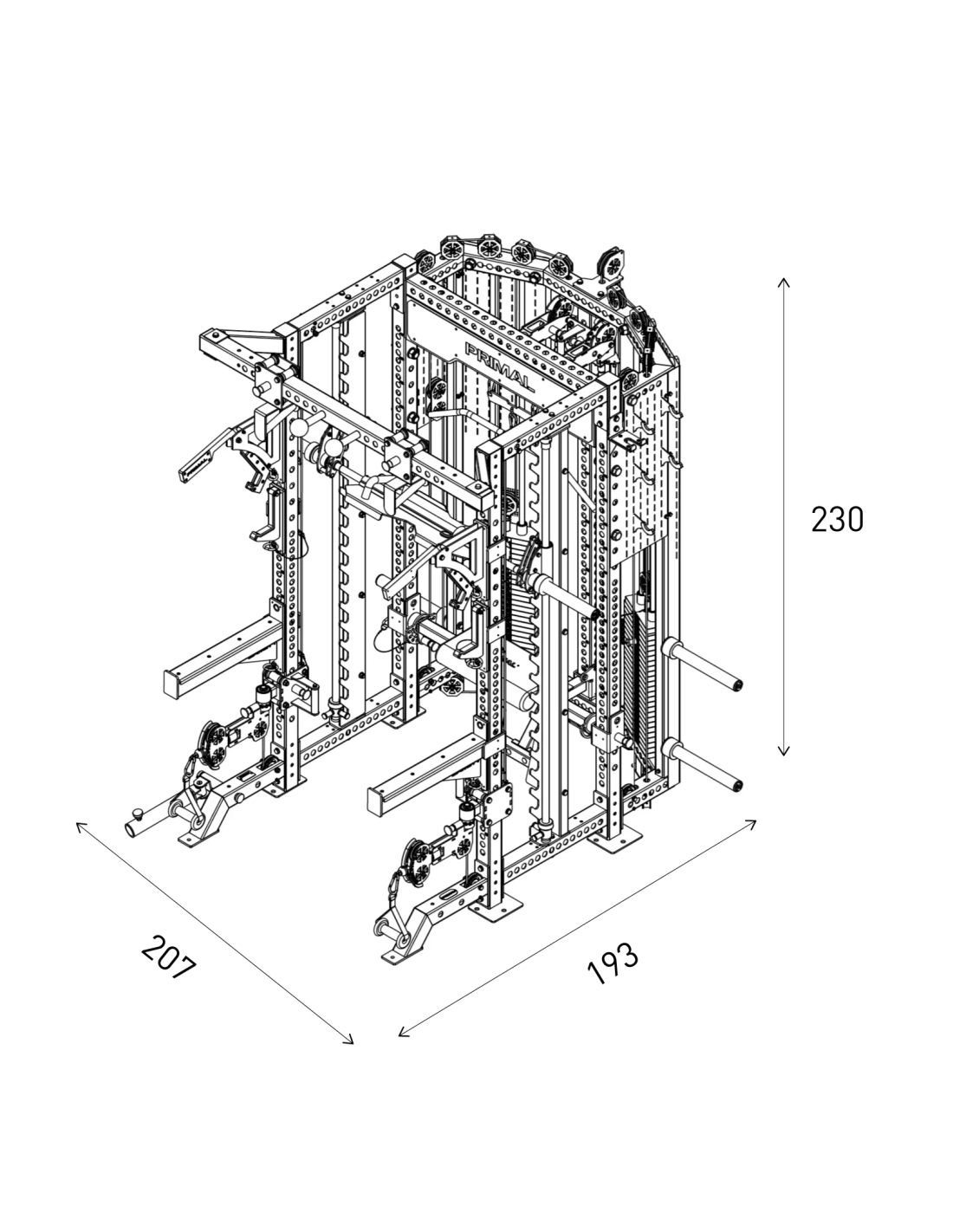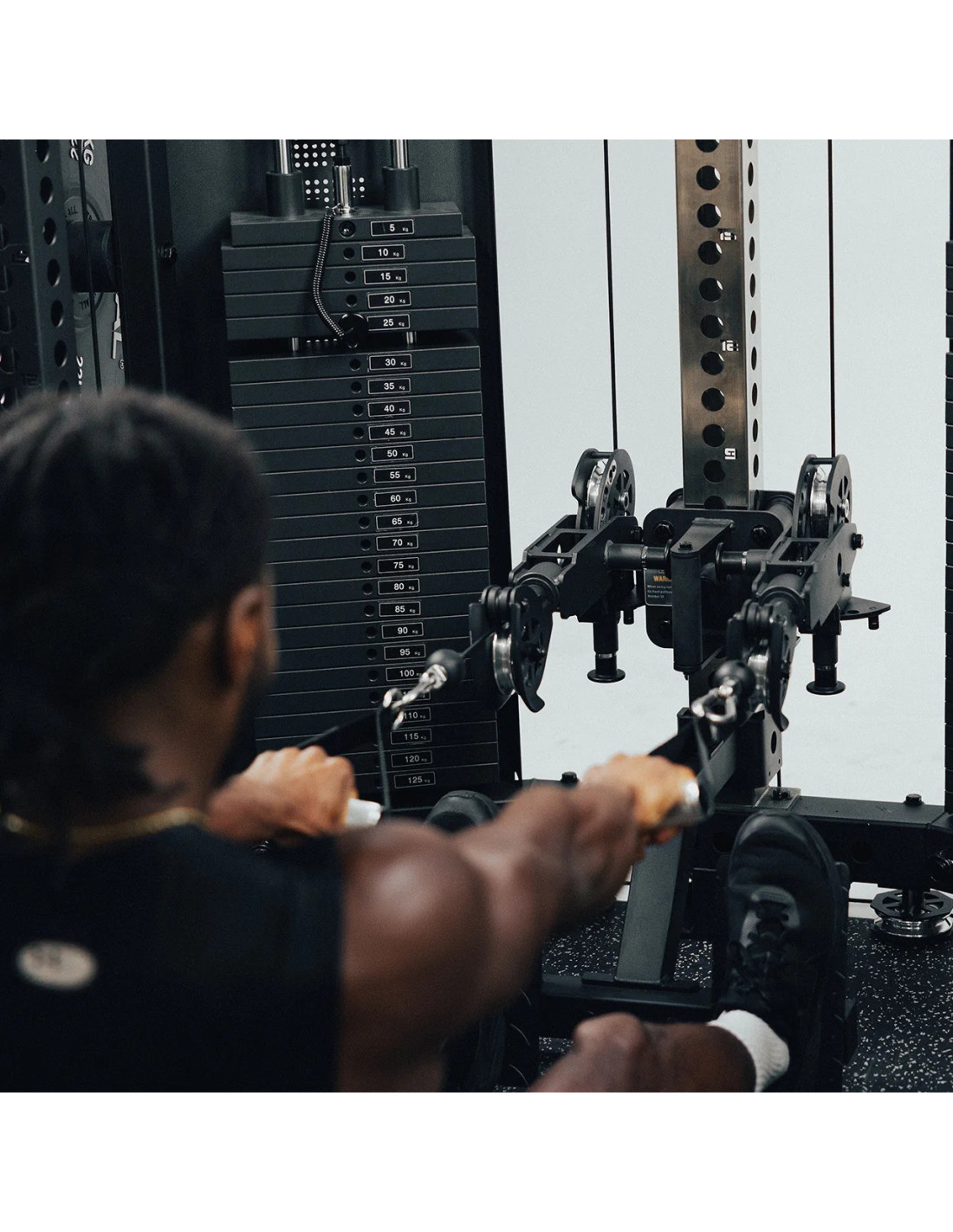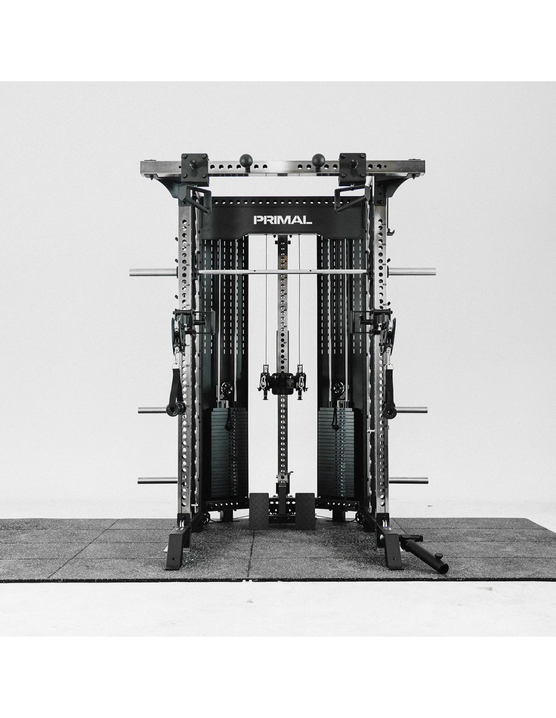 Le Système Multi Rack MRX9.0 de la série Primal Personal est conçu pour regrouper certaines des machines les plus prisées d'une salle de sport commerciale, tout en occupant beaucoup moins d'espace que plusieurs équipements distincts. Les machines principales incluses dans le Système Multi Rack MRX9.0 de la série Primal Personal sont : Demi-Cage, Entraîneur Fonctionnel, Machine Smith, Tirage Vertical/Rowing Bas et Presse à Jambes Verticale (lorsque la plaque de presse à jambes supplémentaire est achetée).