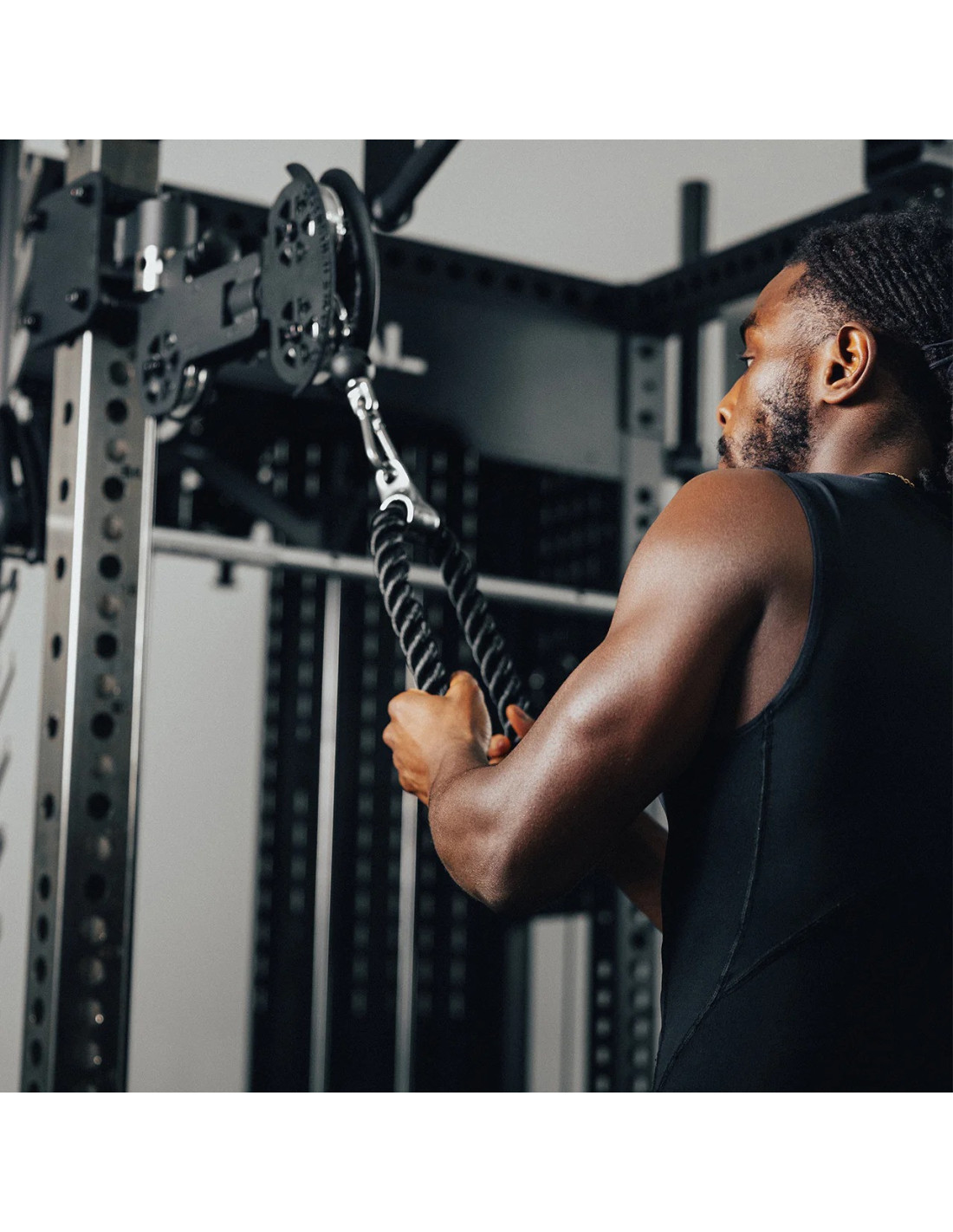 L'Entraîneur Fonctionnel multi-ajustable inclus est adapté aux utilisateurs de tous niveaux et offre une flexibilité d'entraînement exceptionnelle avec 26 positions de réglage de câble pour une variété de mouvements d'exercice.