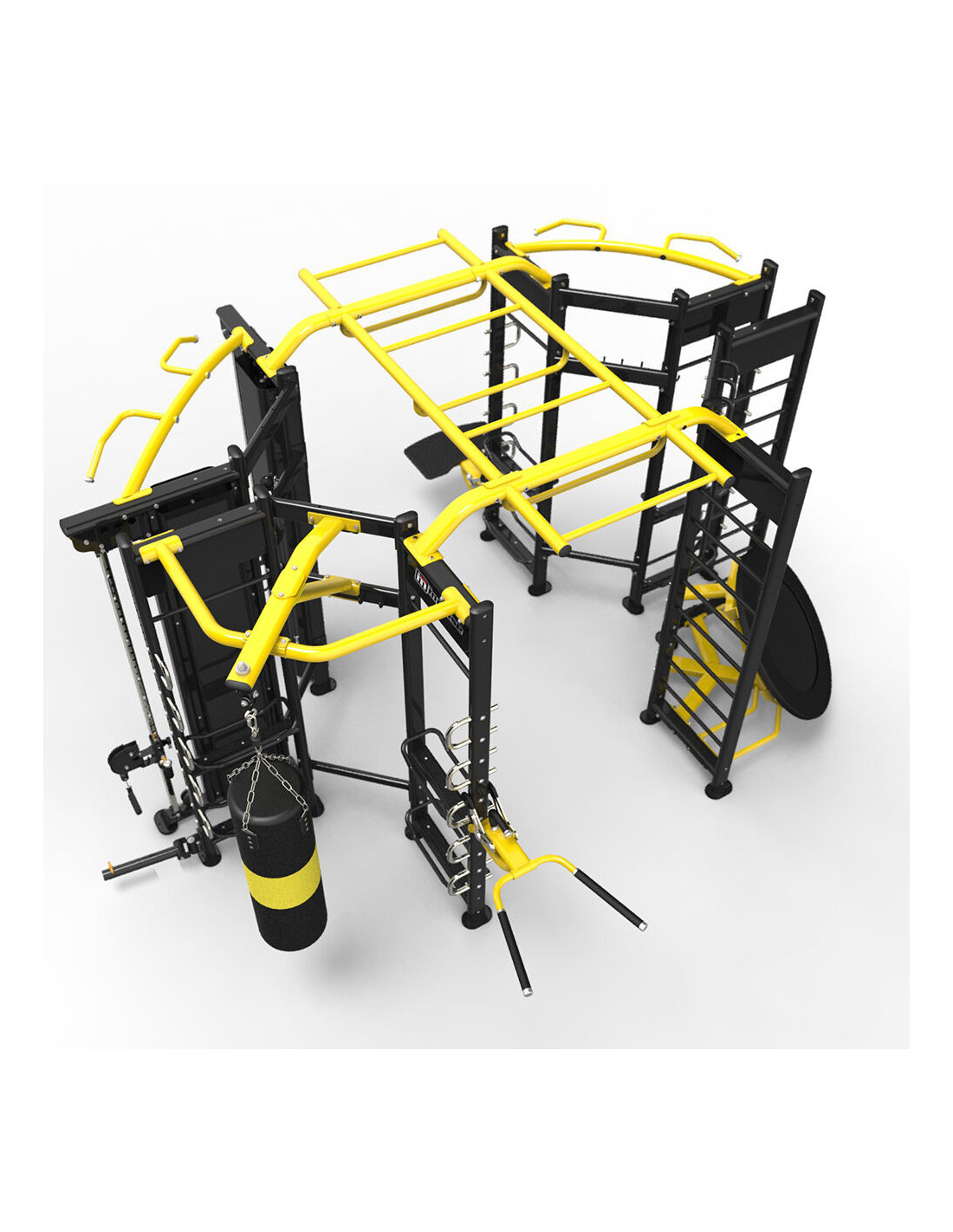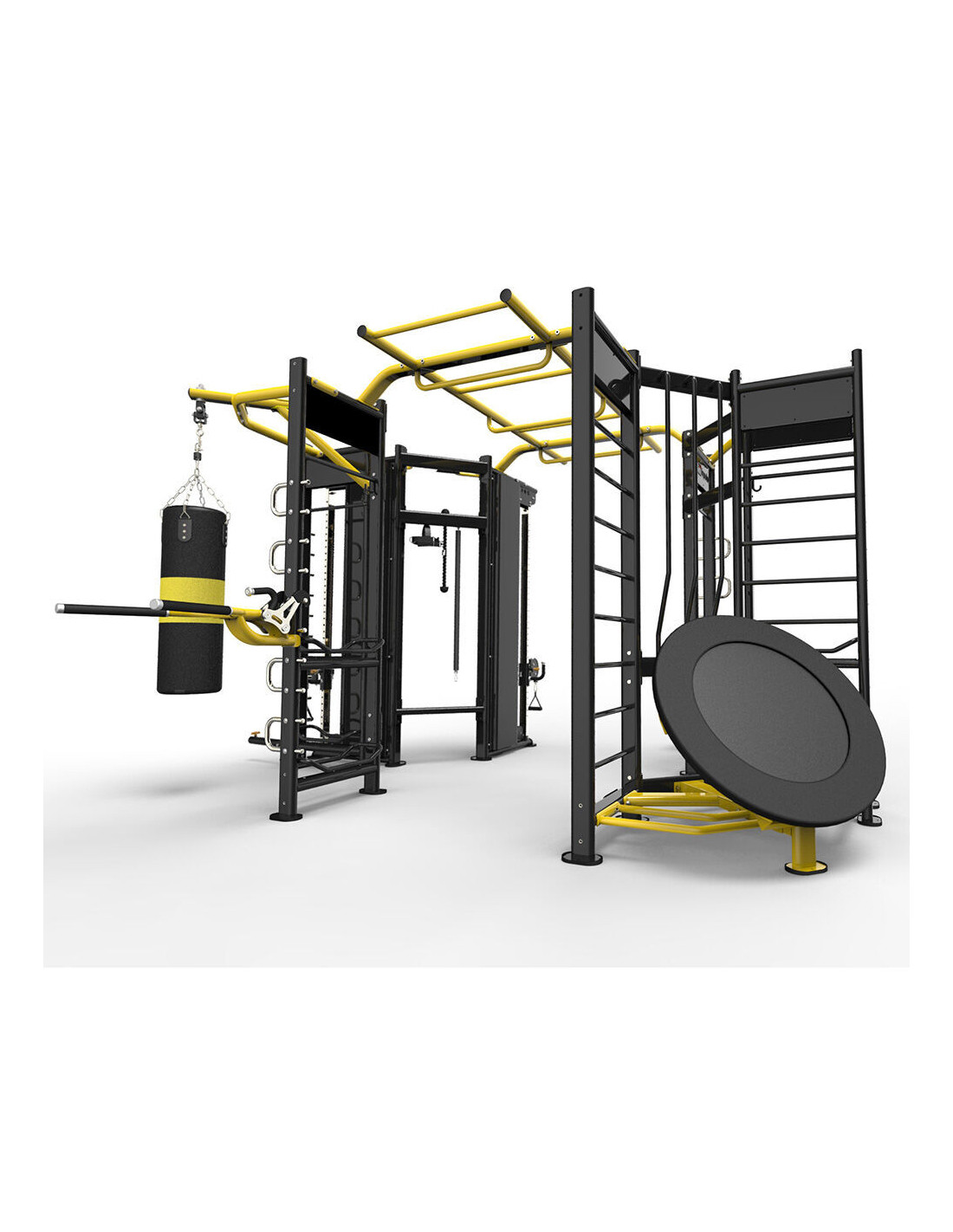 Les possibilités et la variété de fonctionnalités et d'accessoires optionnels professionnels offrent de nombreuses façons de s'entraîner seul ou en groupe et les nombreuses combinaisons possibles satisferont les différents besoins des salles et centres sportifs, des centres de fitness, mais aussi des clubs orientés vers l'haltérophilie, l'entraînement fonctionnel, le crossfit, etc... Cet ensemble hautement fonctionnel placé au centre de votre club en sera la pièce maîtresse.
