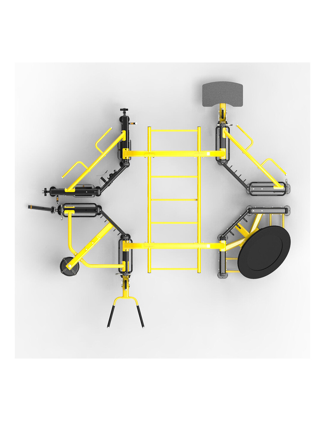 Le module Stair-4 (monkey Bars) IZ7015 a une portée de 241 cm pour une largeur de 171 cm. Il dispose de 7 barres (hauteur alternée) pour les exercices de pont de singe. Vous pourrez également y accrocher vos sangles de suspension training ou vos bandes élastiques.