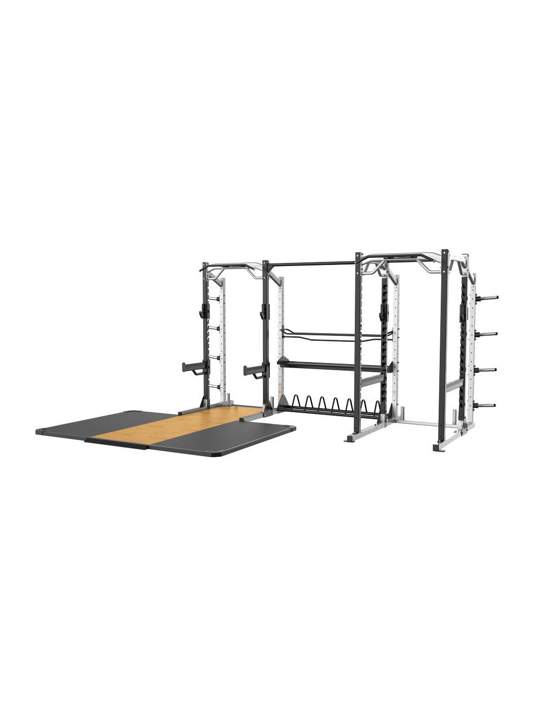 Cette riche variété de fonctionnalités et d'accessoires optionnels professionnels offrent de nombreuses possibilités d'entraînement pour un large éventail d'utilisateurs et les nombreuses combinaisons possibles satisferont les différents besoins des salles et centres sportifs, des centres de fitness, mais aussi des clubs orientés vers l'haltérophilie, l'entraînement fonctionnel, le crossfit, etc... Cet ensemble hautement fonctionnel ne manquera pas d'attirer l'attention dans votre club.