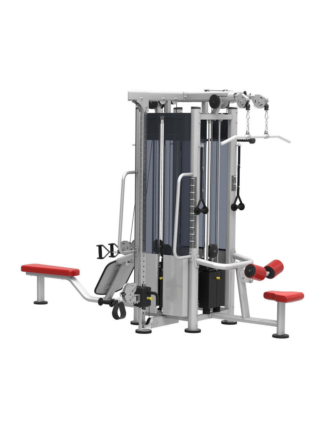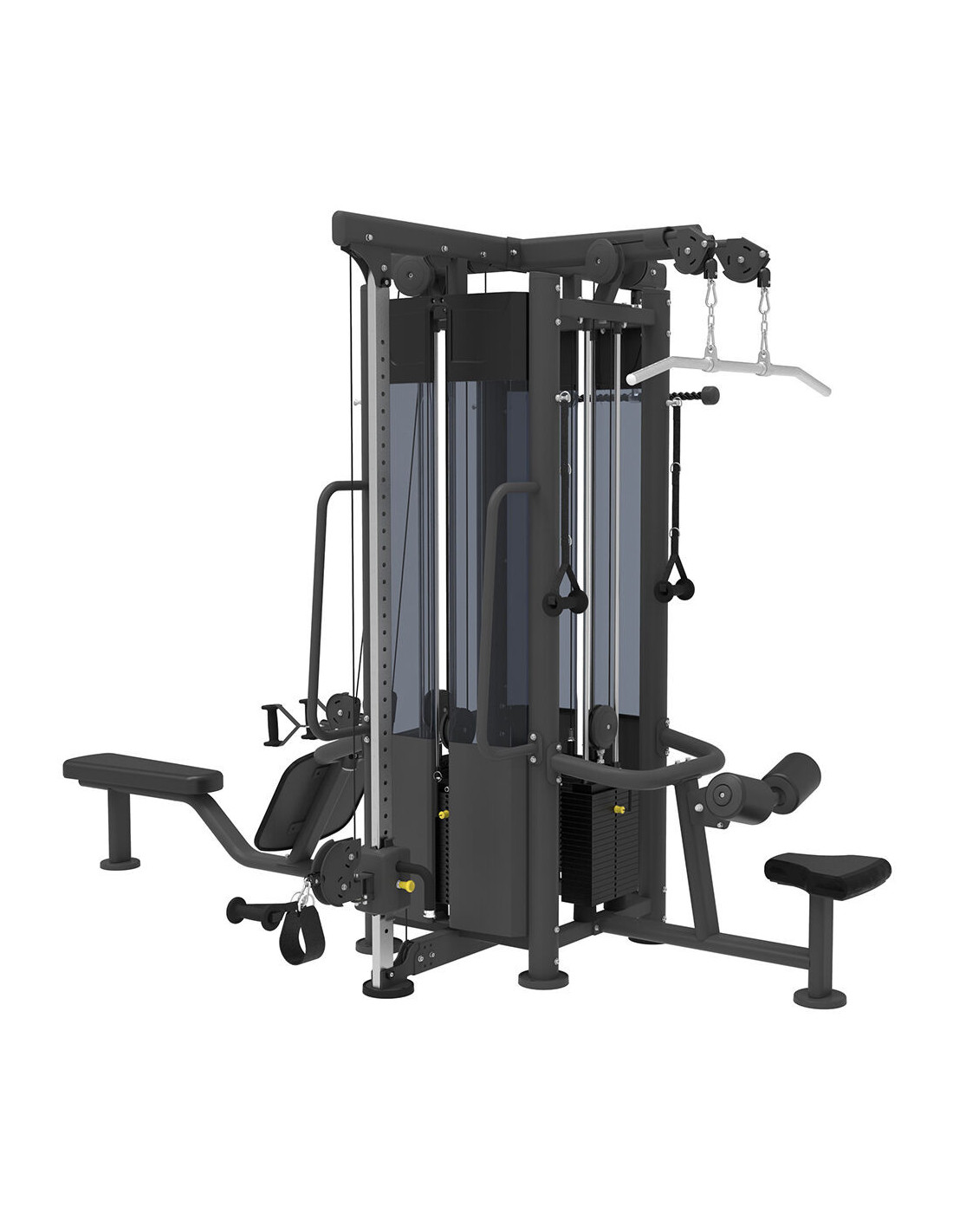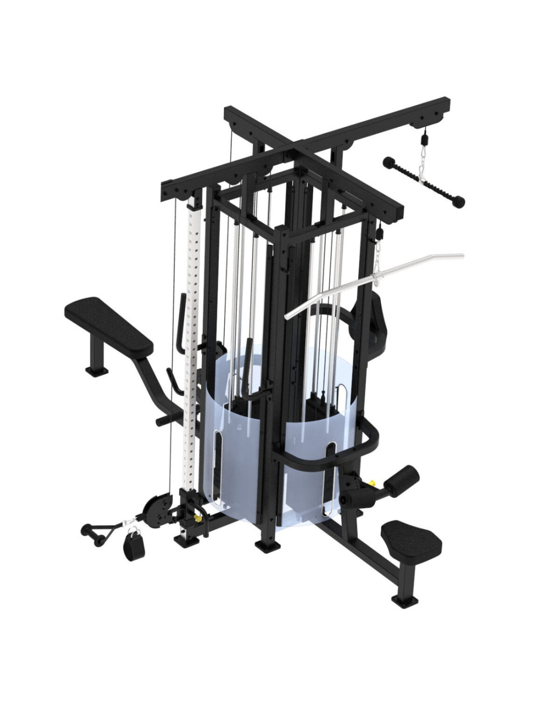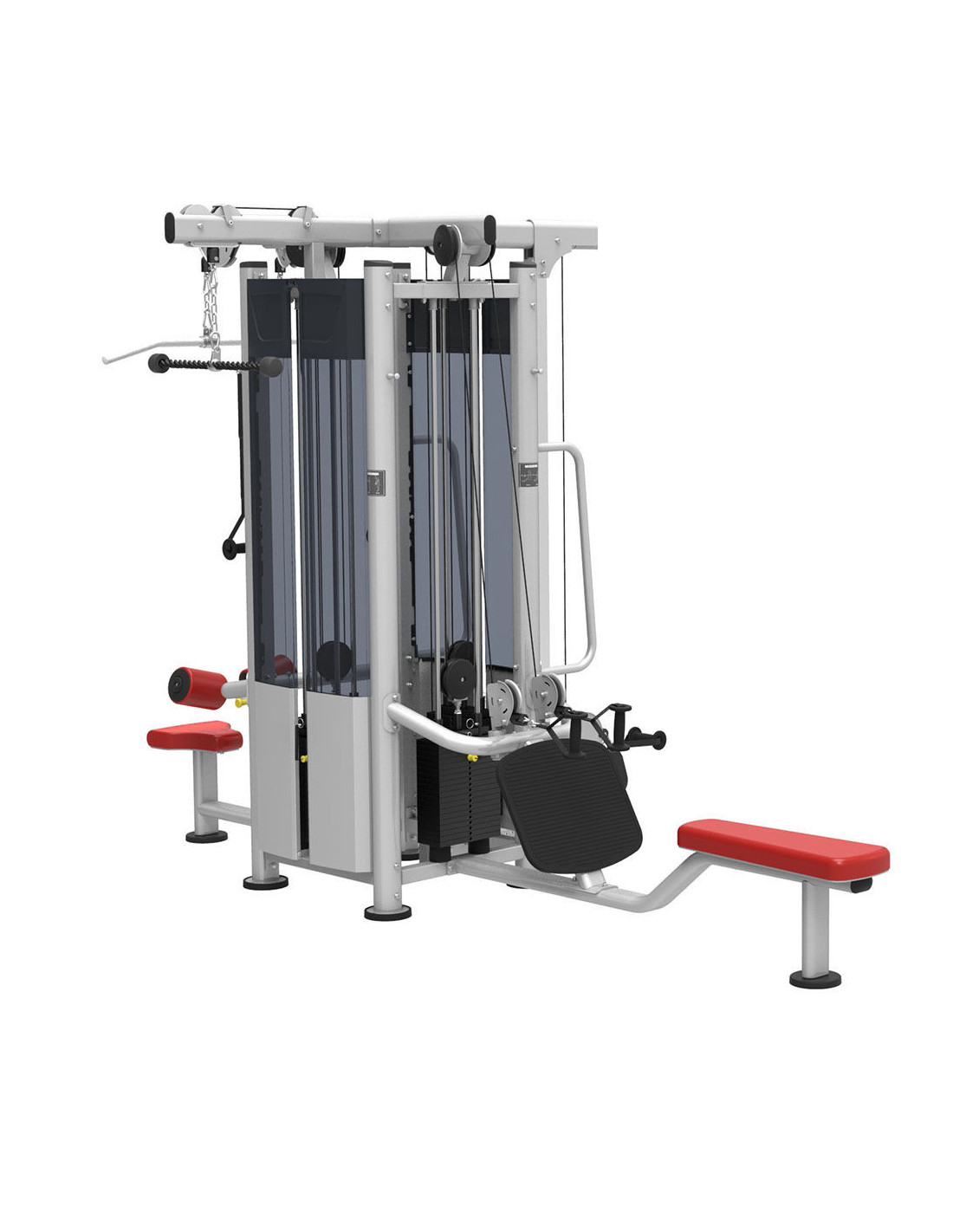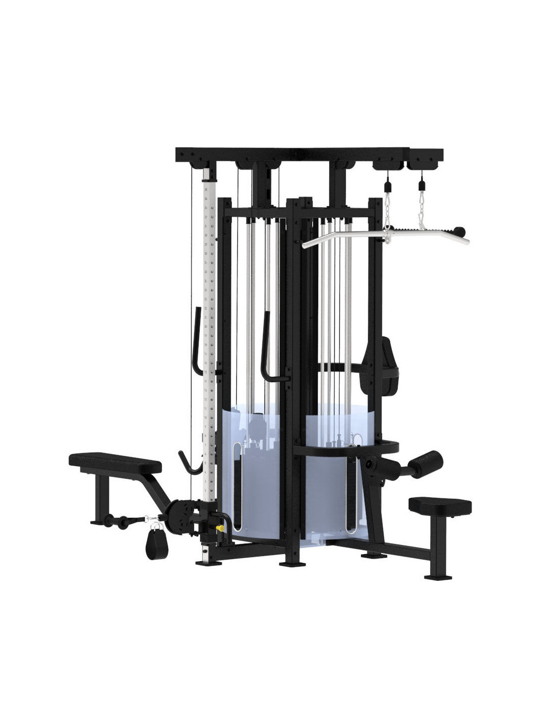 La Jungle Machine Impulse IT9527 est une tour 4 postes professionnelle à charge guidée conçue pour l'entraînement complet des membres supérieurs. L'appareil peut accuillir 4 utilisateurs en simulatanés. Les 4 postes sont chargés à 134 kg. Les postes poulie haute et poulie basse sont à tirage double câble pour plus de variété dans les exercices.