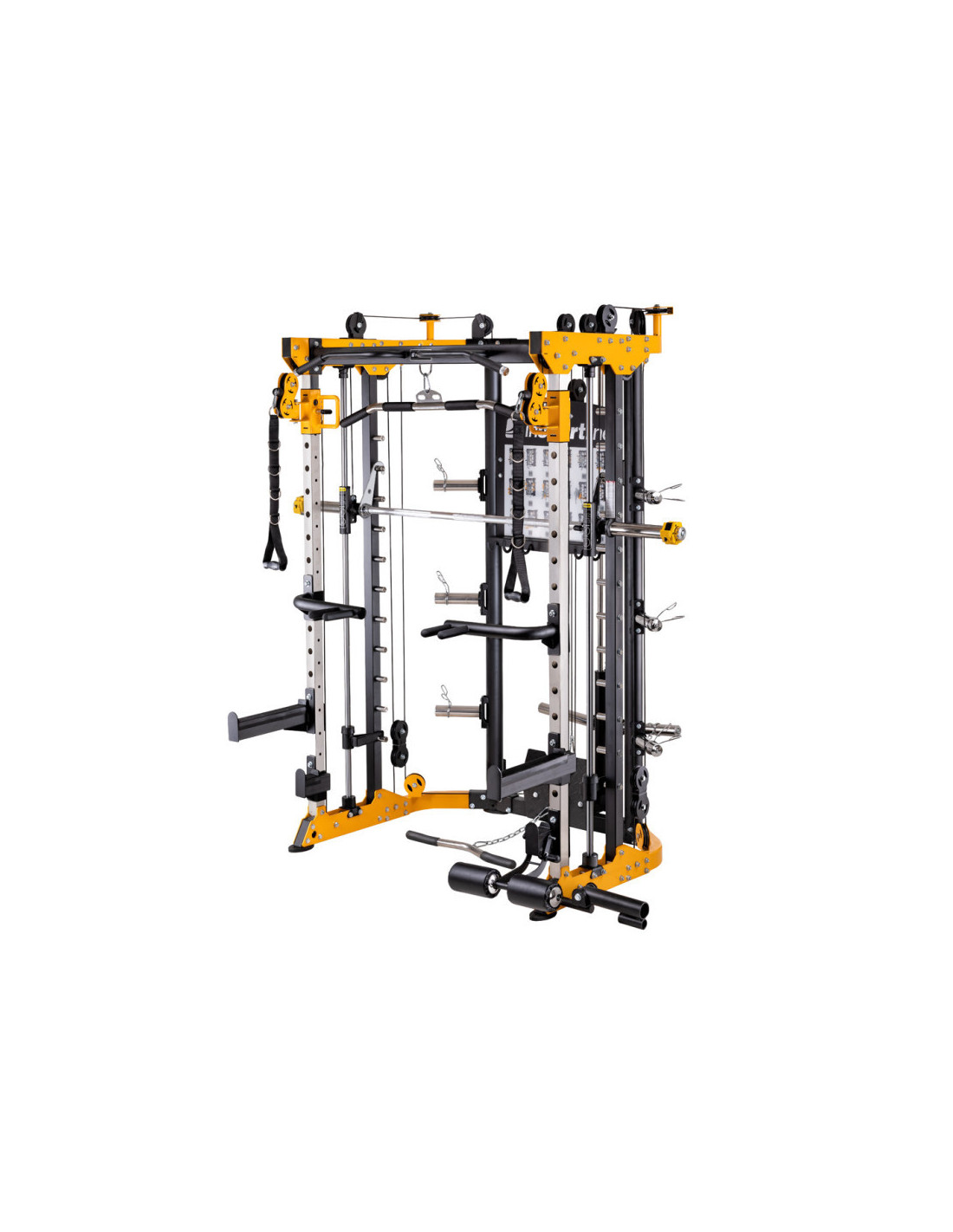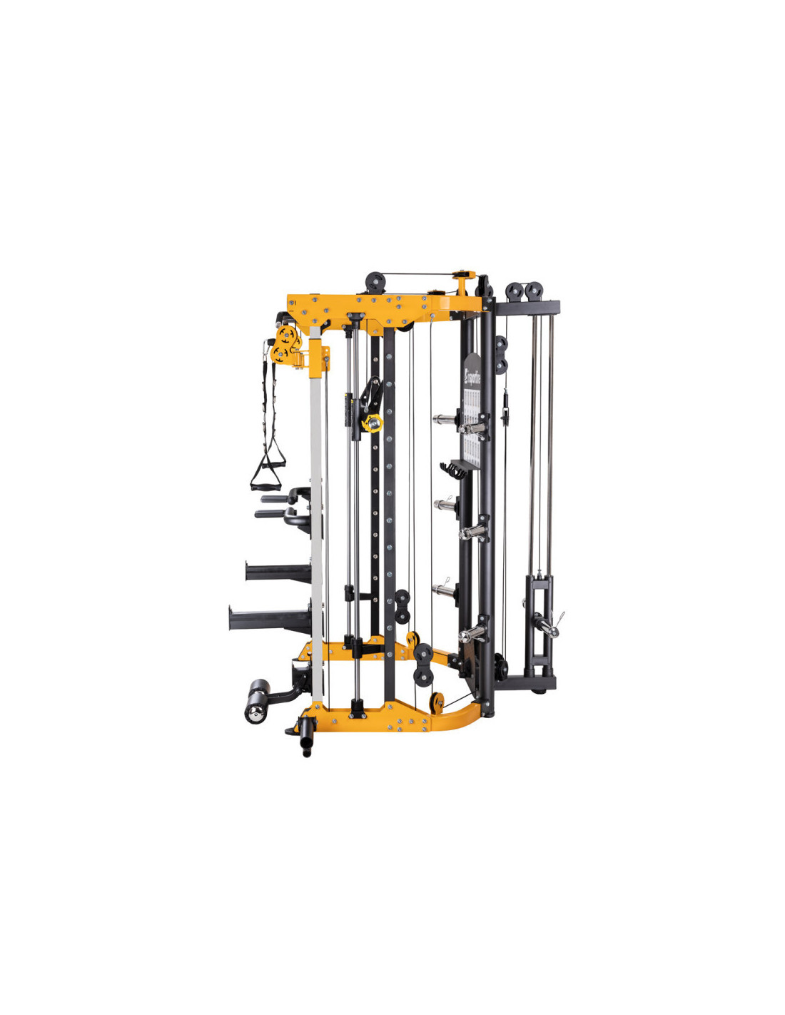 Vous ne trouverez pas de station de musculation aussi complète que cette smith machine ! En effet, une multitude de postes et d'accessoires sont utilisables sur cette station de musculation multifonction. Voici un aperçu des différents postes disponibles pour l'entraînement sur cette smith machine de musculation