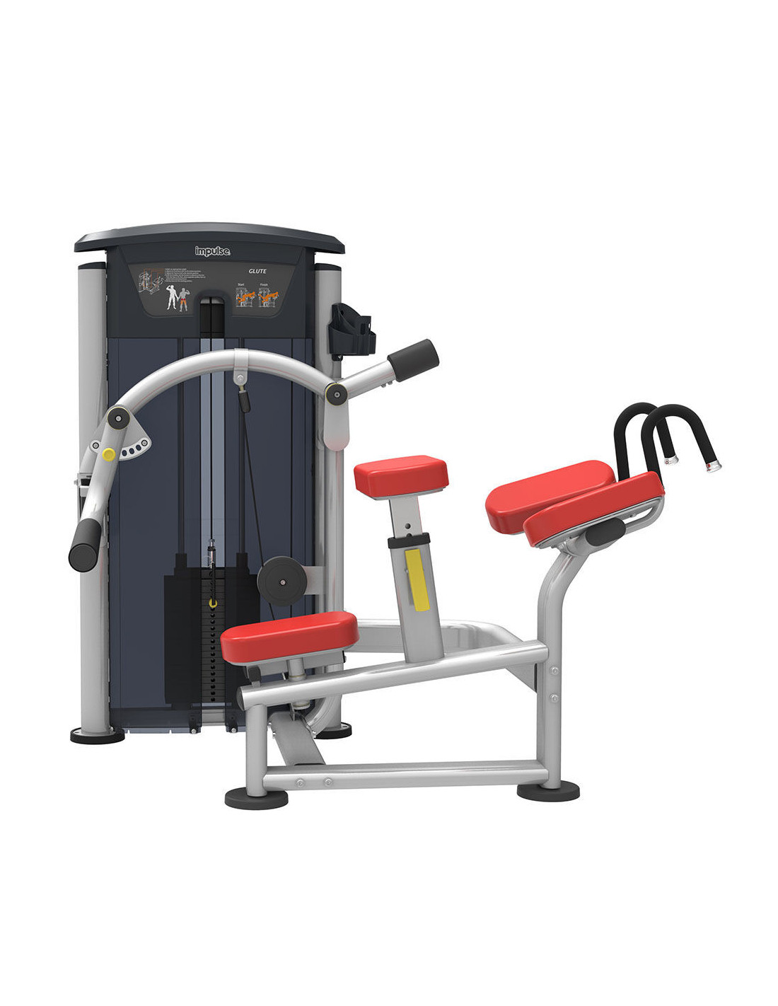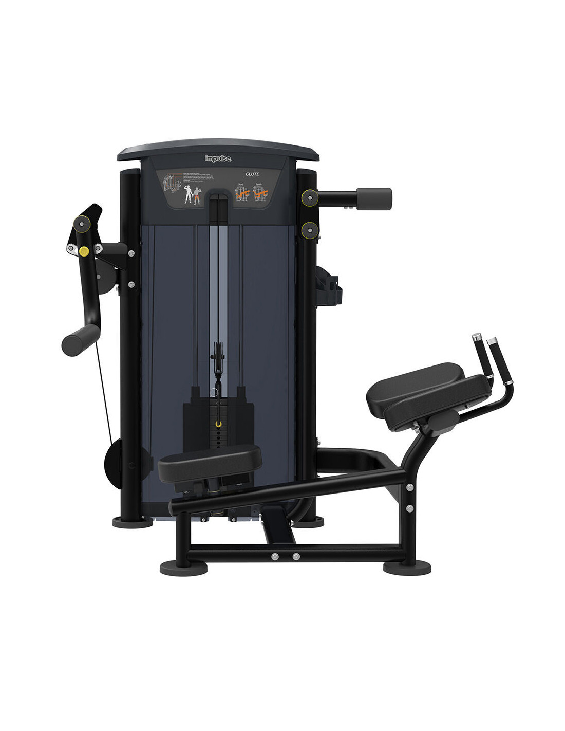 L'appareil à Fessiers professionnel à charge guidée Impulse IT9526 est idéal pour l'entraînement du grand fessier. L'utilisateur peut travailler efficacement les fessiers en étirant la jambe vers l'arrière pour lever le bras de tirage, avec un charge allant jusqu'à 91 kg. L'appui pectoral réglable est un plus indéniable pour cet exercice.