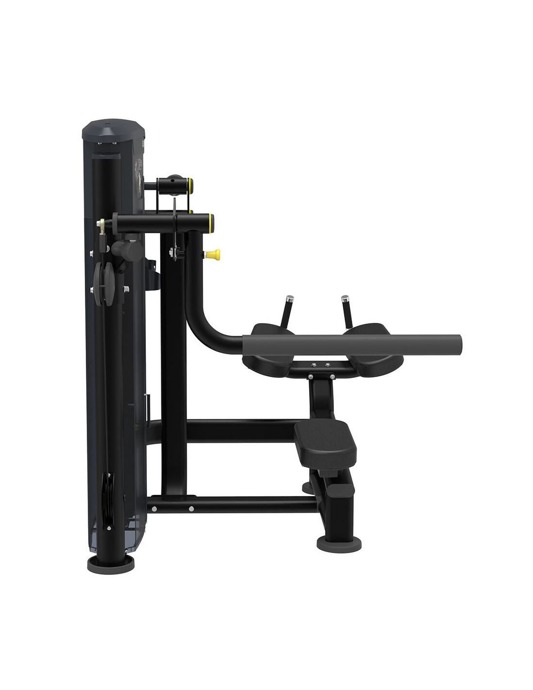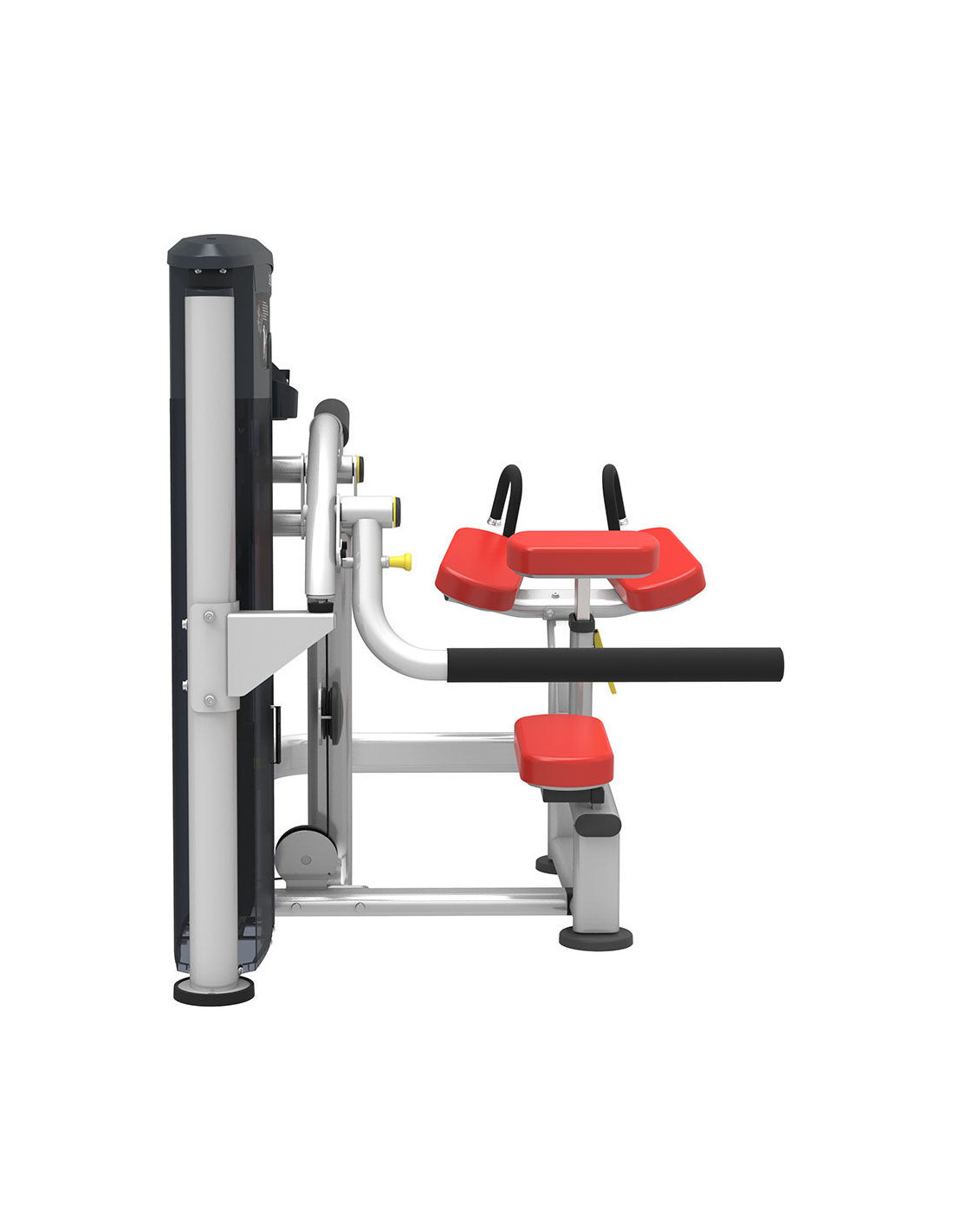 La position de départ du repose-pieds est ajustable pour répondre aux différentes tailles d'utilisateurs et éliminer la pression sur le genou. Le coussin repose-jambes pivote pour passer rapidement d'une jambe à l'autre. Les poignées de maintien et les grands coussins repose-coudes fournissent une aide au mouvement et une excellente stabilité du haut du corps. L'appui pectoral réglable en hauteur assure quant à lui un bon positionnement et un maintien des hanches durant l'exercice.