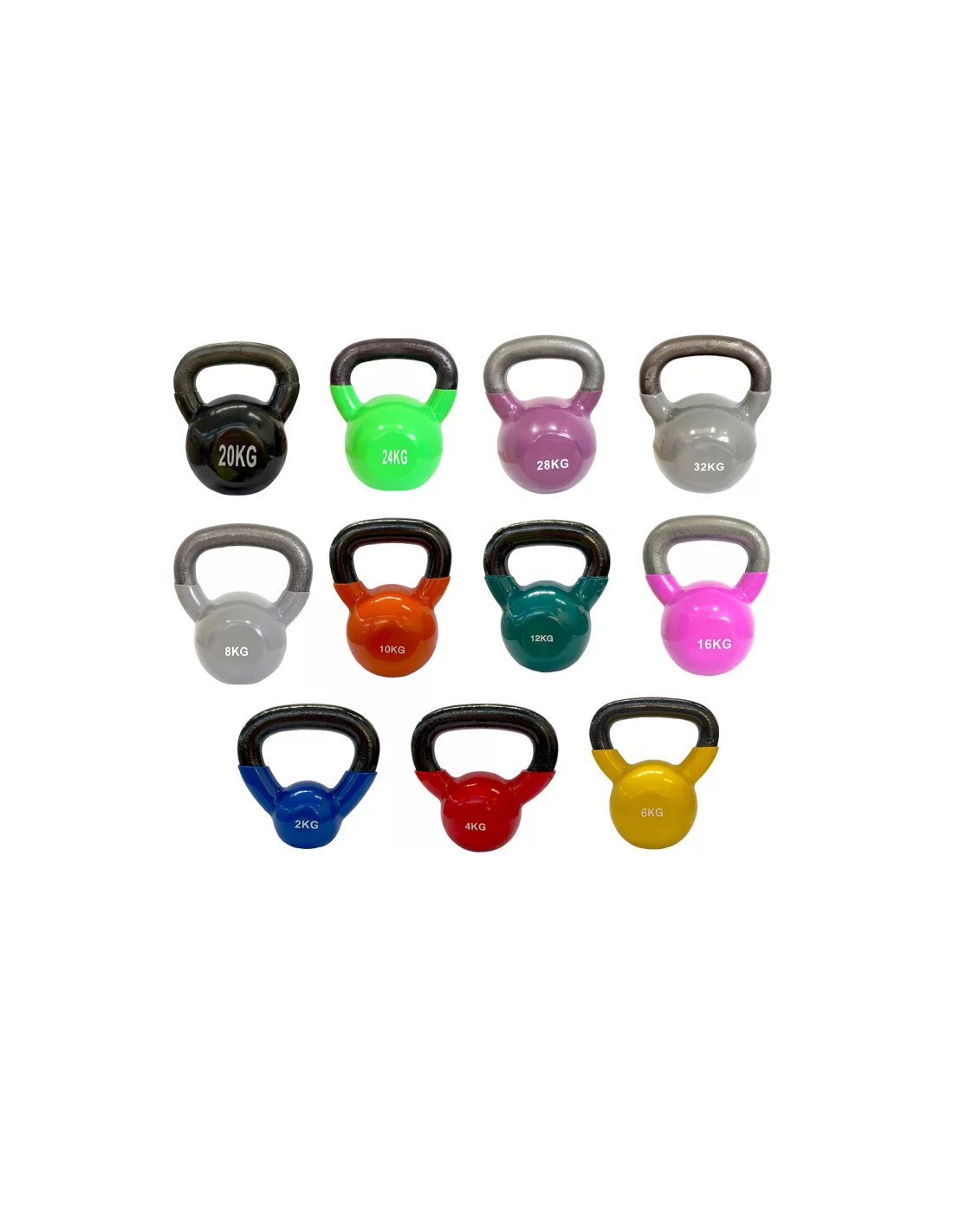 - Disponibilité des poids : 2, 4, 6, 8, 10, 12, 16, 20, 24, 28 et 32Kg.