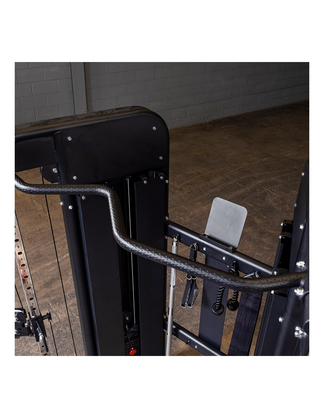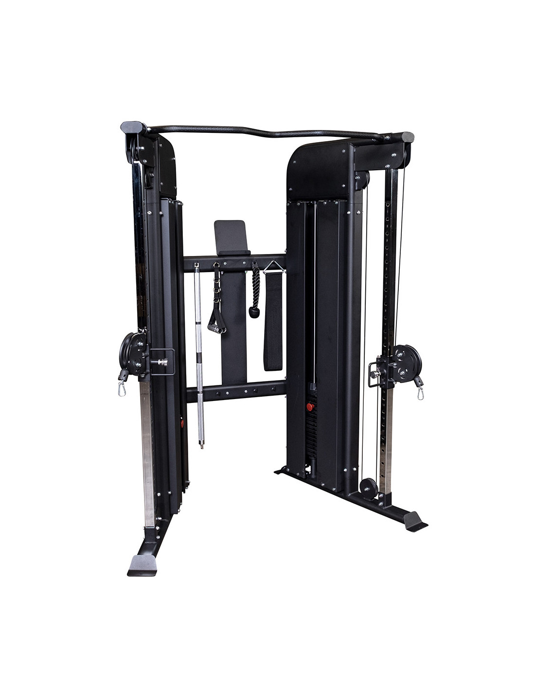 La station fonctionnelle GFT100C avec couvercles de protection est robuste et stable grâce à sa structure en acier avec une finition en poudre noire. Son poids est de 287 kg et elle mesure L 114.5 x L 162.5 x H 210.8 cm. Elle s'adapte parfaitement pour une salle de sport ou la maison.