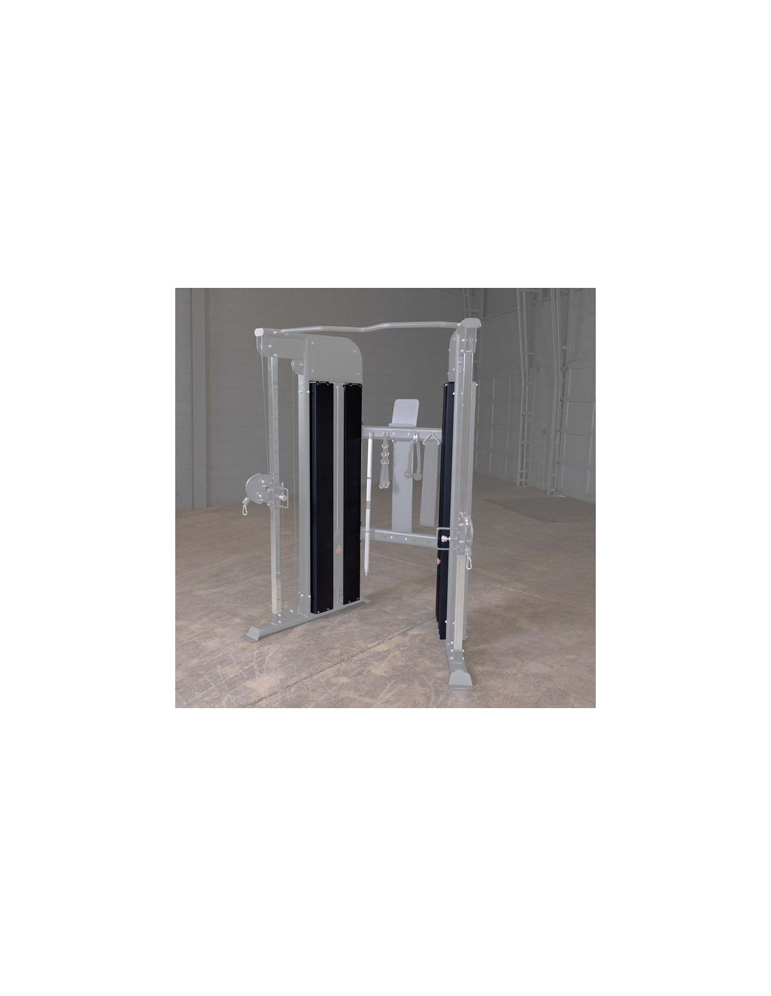 La station est composée de deux piles de poids de 75 kg. La conception permet de réaliser des mouvements isolés.