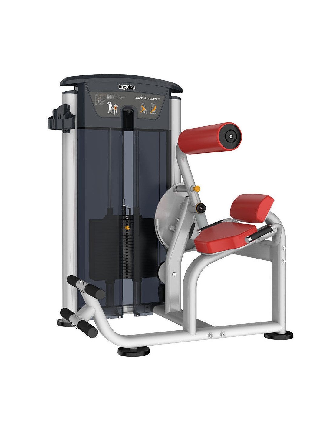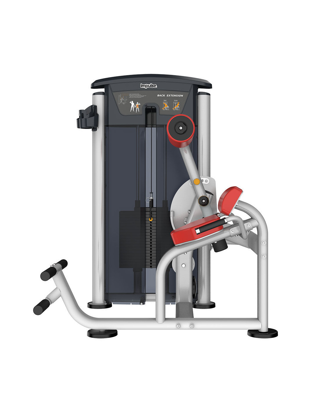 L'appareil à charge guidée professionnel pour l'extension des lombaires Impulse IT9532 est spécialement conçu pour le renforcement des muscles lombaires et de la zone abdominale. L'utilisateur peut travailler efficacement le muscle du dos en ajustant la position initiale et en basculant le dos en arrière après avoir choisi le poids approprié jusqu'à 91 kg.