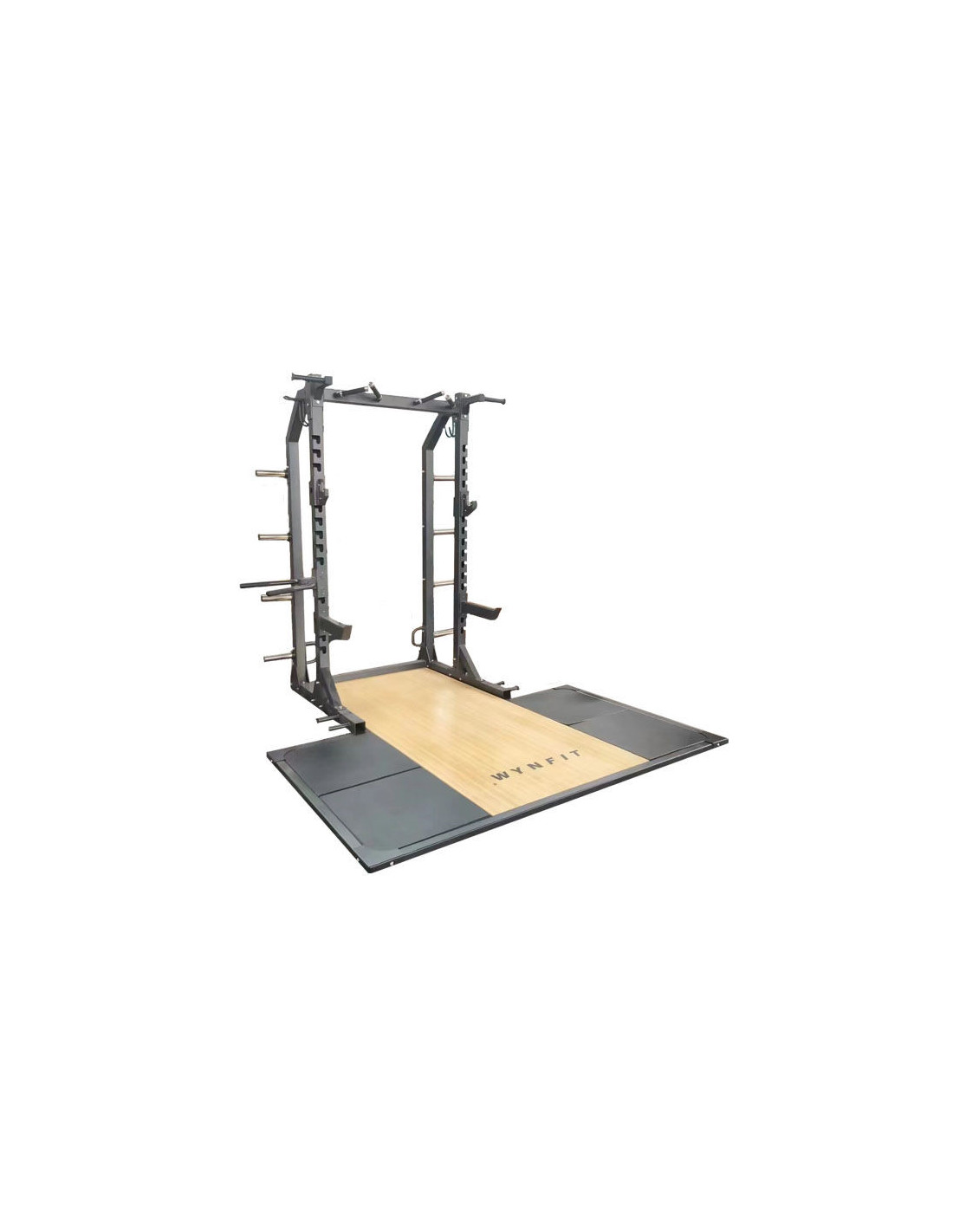 Le Half Rack WYNFIT PRPH offre de nombreux accessoires déjà inclus qui permettent de ranger vos disques et vos bandes élastiques et d'effectuer vos squats ou bench press en toute sécurité grâce aux 4 crochets de retenue réglables en hauteur. Les deux crochets universels pour corde ondulatoire, ainsi que le double landmine (non illustré), le dip horn et les 4 points d'ancrage pour bandes de résistance seront autant d'atouts pour les exercices complémentaires.