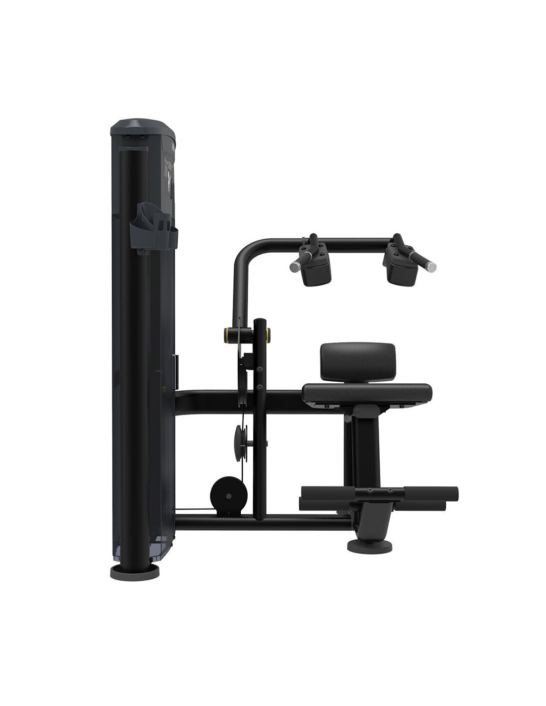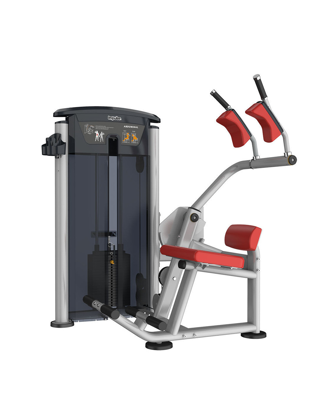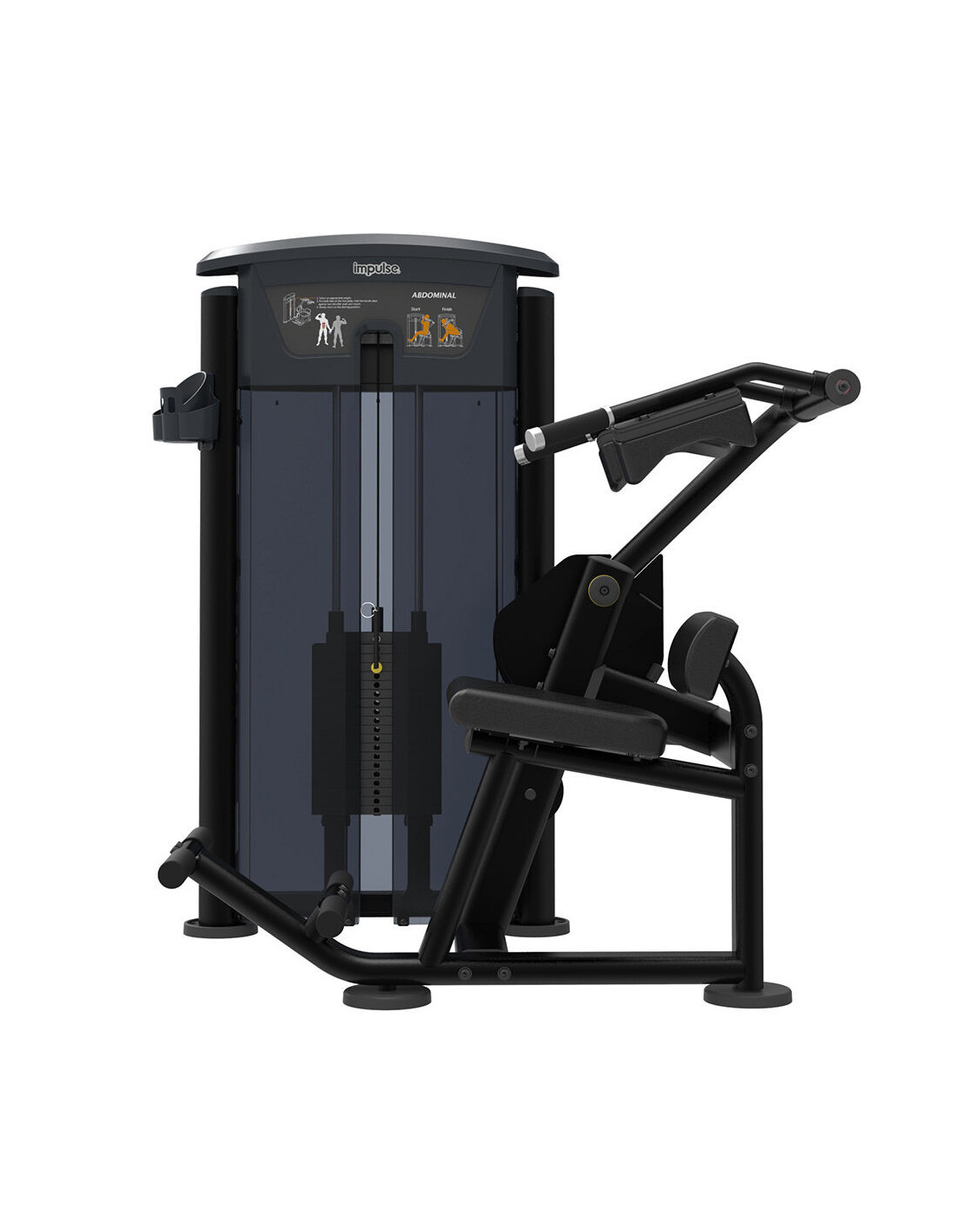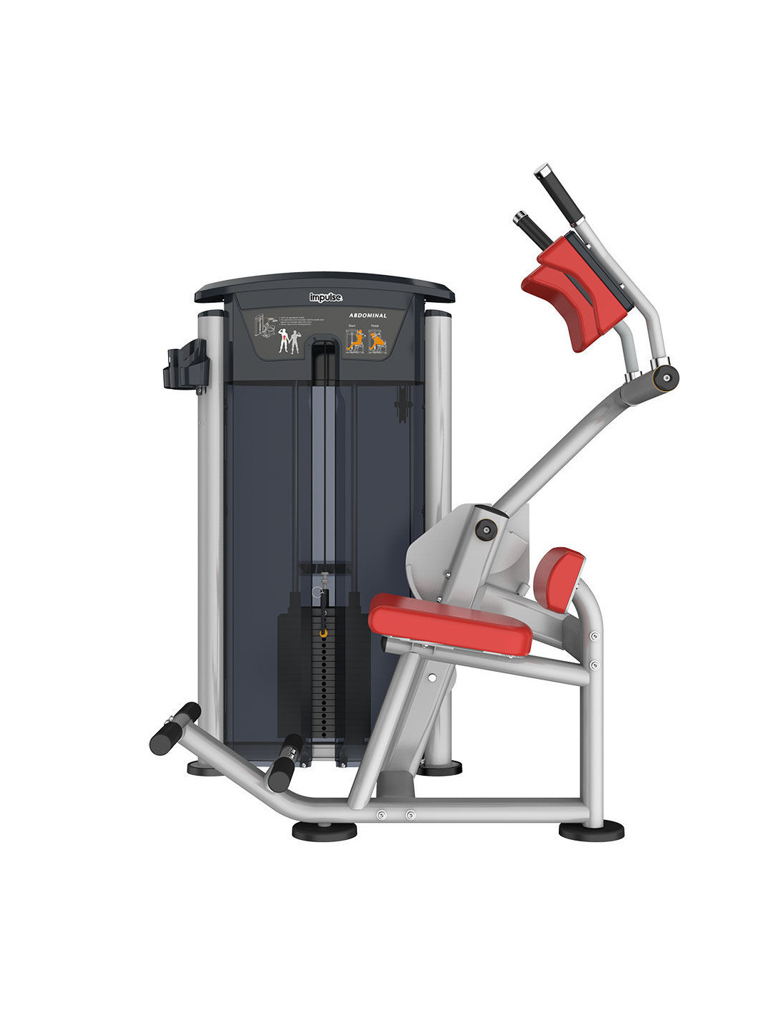 L'Abdominaux Impulse IT9514 est un appareil de musculation professionnel à charge guidée conçu pour l'entraînement du muscle droit de l'abdomen. L'utilisateur peut travailler efficacement les muscles abdominaux en un mouvement de bascule vers l'avant après avoir choisi le poids approprié jusqu'à 91 kg.