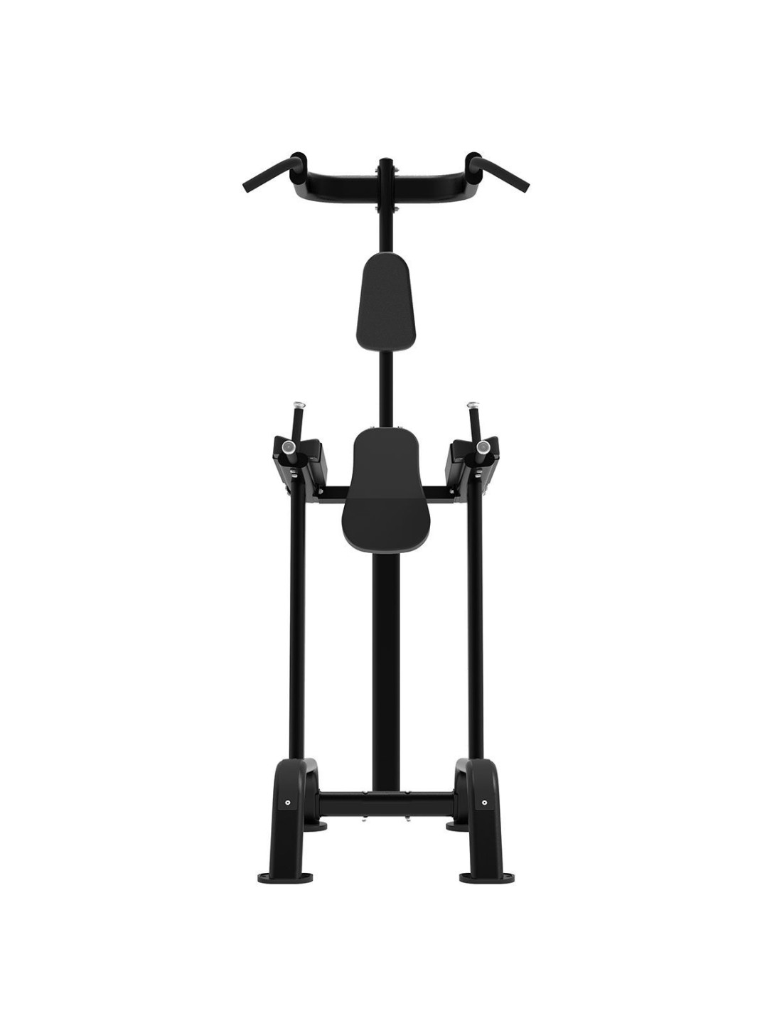 Les accoudoirs et les poignées ergonomiques s'inclinent vers l'intérieur pour offrir aux utilisateurs soutien et confort pendant l'entraînement. Les poignées horizontales conçues pour la flexion et l'extension des triceps (triceps dips) simule le travail aux barres parallèles. Le dossier incliné offre un bon maintien du dos et une bonne position de travail durant toute l'amplitude du mouvement.