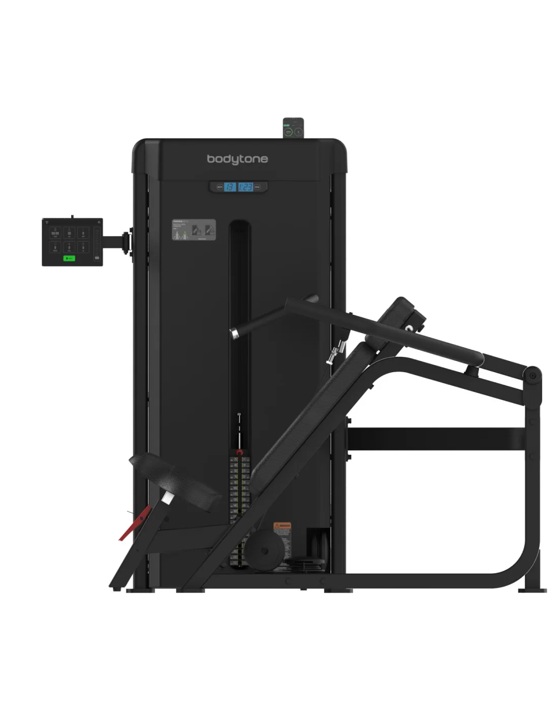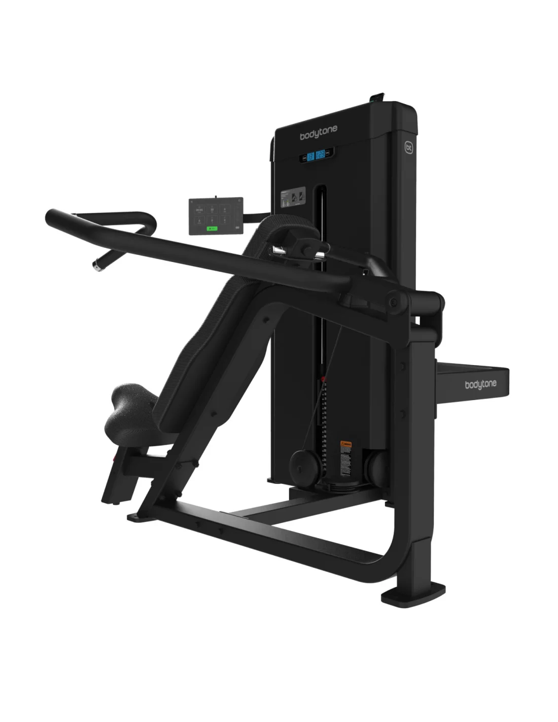 O Shoulder Press 106 Kg da Bodytone é um equipamento de força essencial para o seu treino. Apresentando uma tela sensível ao toque de 10 polegadas de alta resolução, ele monitora seus treinos e sincroniza suas estatísticas com o aplicativo MyBodytone. Faça login facilmente em sua conta usando o sensor NFC. Um produto essencial para sessões de musculação eficazes.