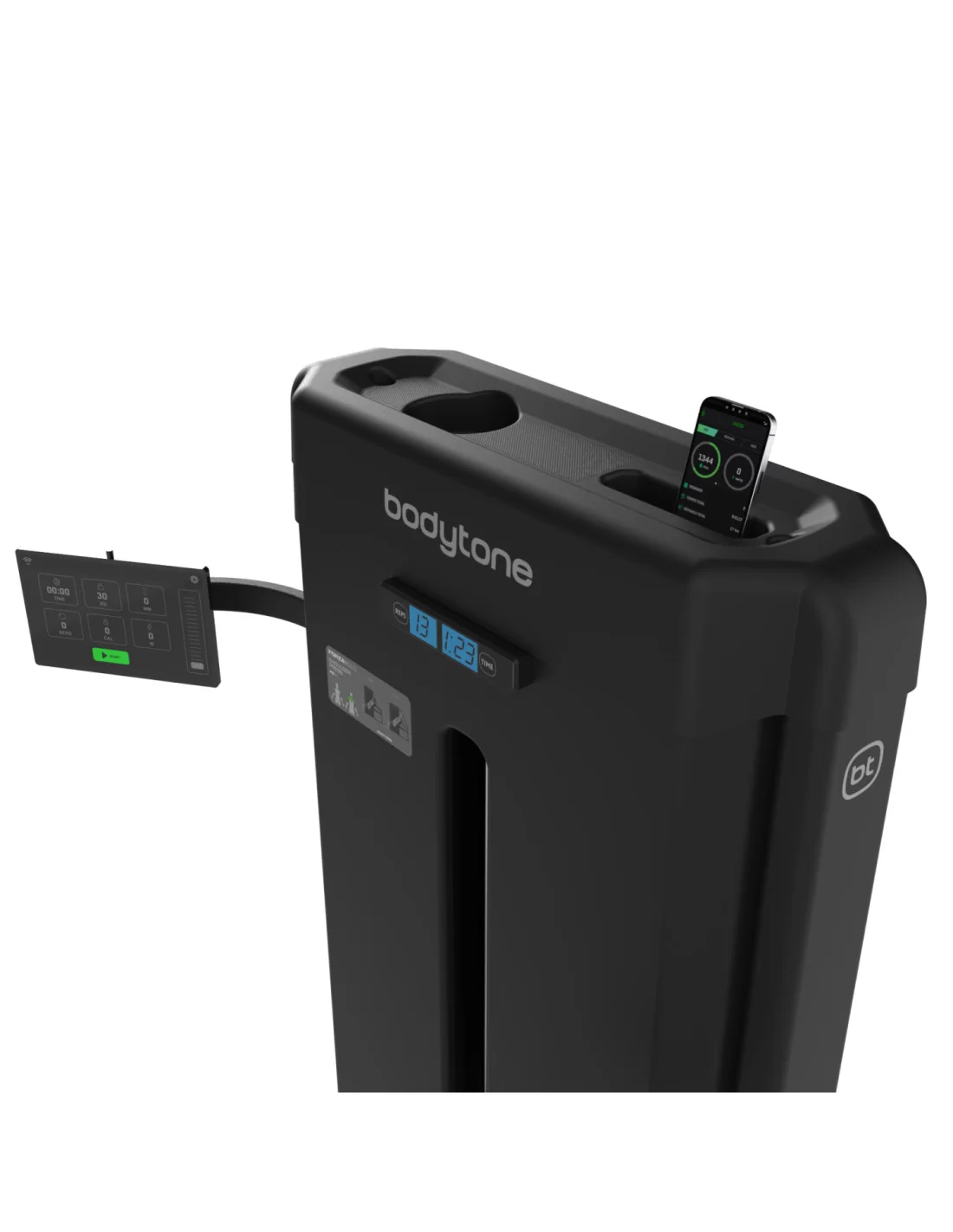 O Shoulder Press 106 Kg da Bodytone é o equipamento ideal para os seus treinos. Apresentando uma tela sensível ao toque de 10 polegadas de alta resolução, ele monitora seu treino e sincroniza suas estatísticas com o aplicativo MyBodytone. Faça login na sua conta de forma rápida e fácil com o sensor NFC.
