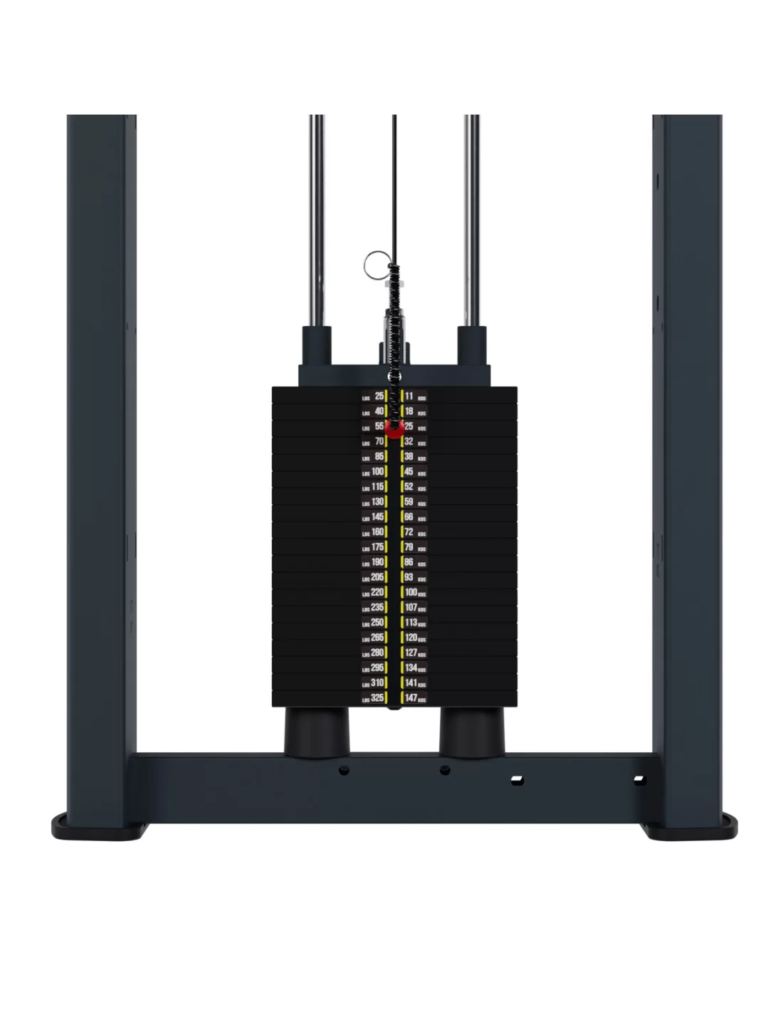 PLACAS DE PESO: 107 kg como padrão. com pratos de 7 kg. Movimento ultra-silencioso. Tampos protetores de borracha em base anti-golpeo. Tampos protetores em PVC entre placas antigolpe.
